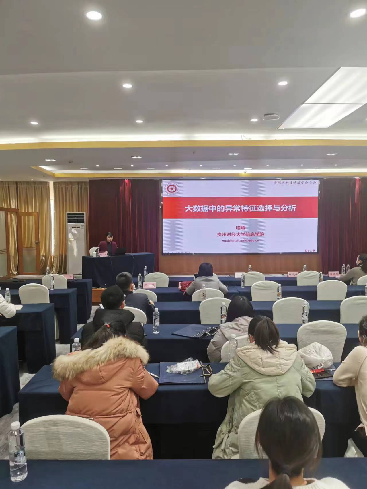 本网讯:(崔鹏 报道|摄影 陈俊彤)12月9日举办的2022年贵州省科技情报学会年会暨贵州省科技情报工作交流培训会上,我院喻曦副教授受邀做《大数据中的异常特征选择与分析》的主题报告。报告中深入浅出的通过一些上市公司、金融公司、银行等案例介绍如何利用大数据的特征提取方式建立一套更灵活适用的企业风险识别的指标体系,更好的帮助企业平衡风险和收益。