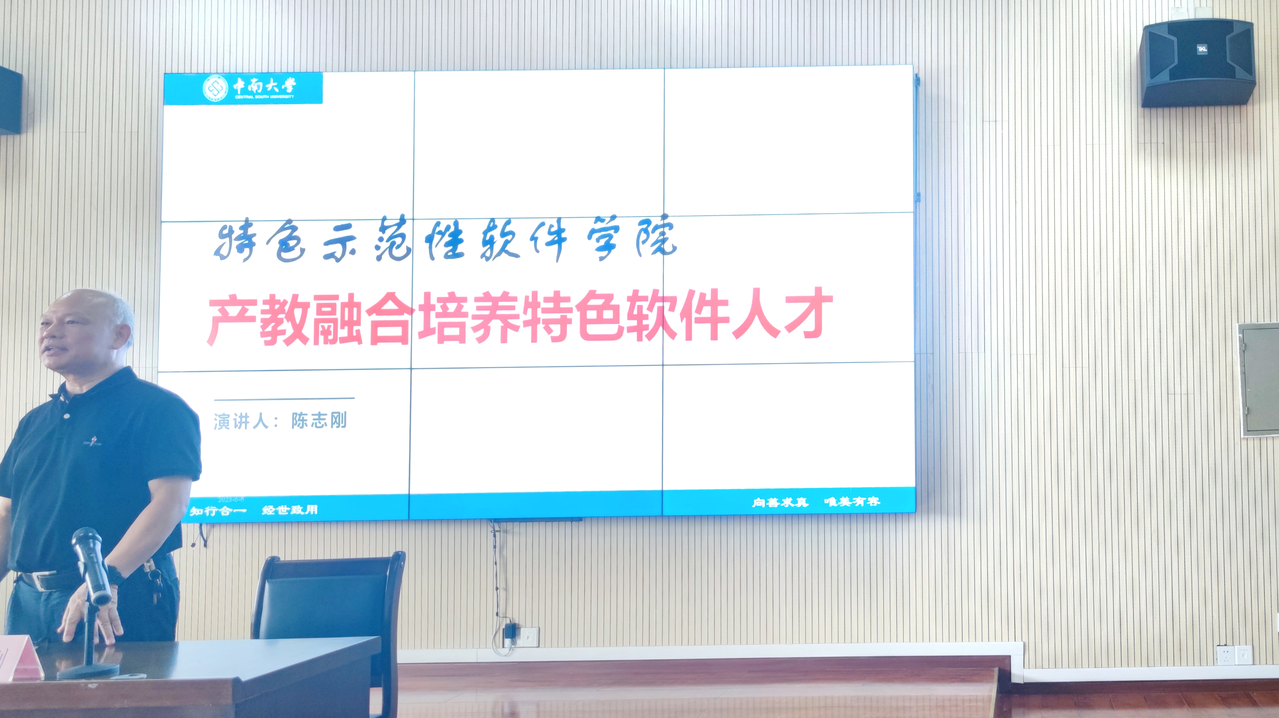 陈志刚教授的讲座题目为“产教融合培养特色软件人才”。陈志刚教授从“信创产业产教融合背景”“特色化示范性软件学院”“产教融合特色化软件人才培养”等方面为学院师生做了介绍。陈志刚教授指出,产教融合特色化软件人才培养的根本任务是以促进学生全面发展为中心,以过程性考核与结果性考核有机结合为培养评价,以产业需求为导向,发挥办学特长和优势作为培养模式,以国际交流合作、行业企业参与和管理、共建共享为培养机制,培养德智体美劳全面发展的社会主义建设者和接班人。陈志刚教授最后阐述了总体设想,专业建设目标,产教融合特色化软件人才培养体系、目标和质量保障体系,为本次讲座画上圆满的句号。