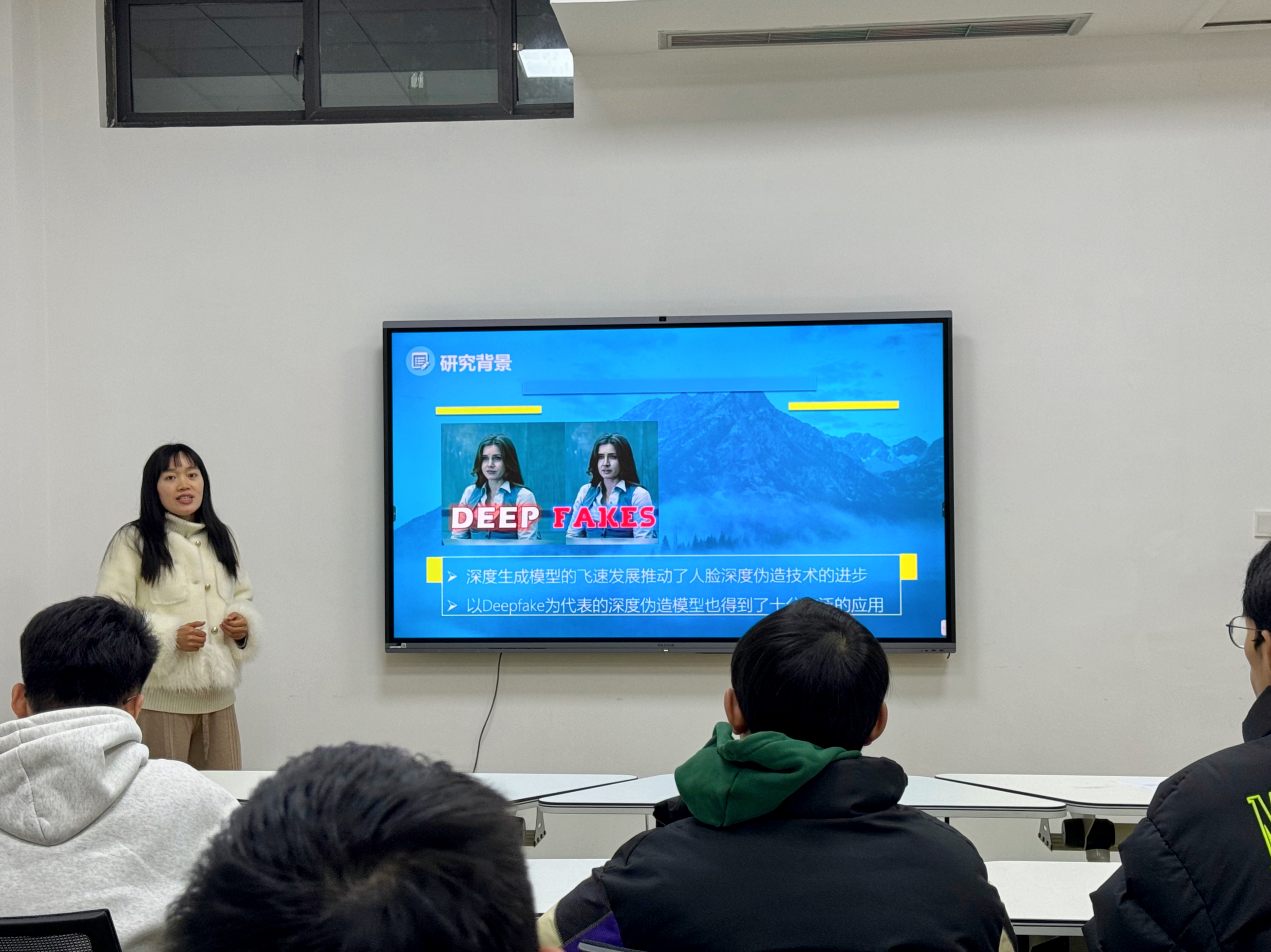 王欢博士开展了名为“人脸深度伪造主动防御技术研究”的讲座。深度生成模型的飞速发展推动了人脸深度伪造技术的进步,因此对深度伪造防御技术的研究日益迫切。现有的防御技术主要分为被动检测和主动防御,而被动检测的方式无法消除伪造人脸在广泛传播中造成的影响,难以做到“事前防御”,因此最近主动防御的思想得到了研究人员的广泛关注。王欢博士从不同角度介绍了深度伪造主动防御方法、深度伪造的主动防御面临的挑战以及其未来发展方向。
