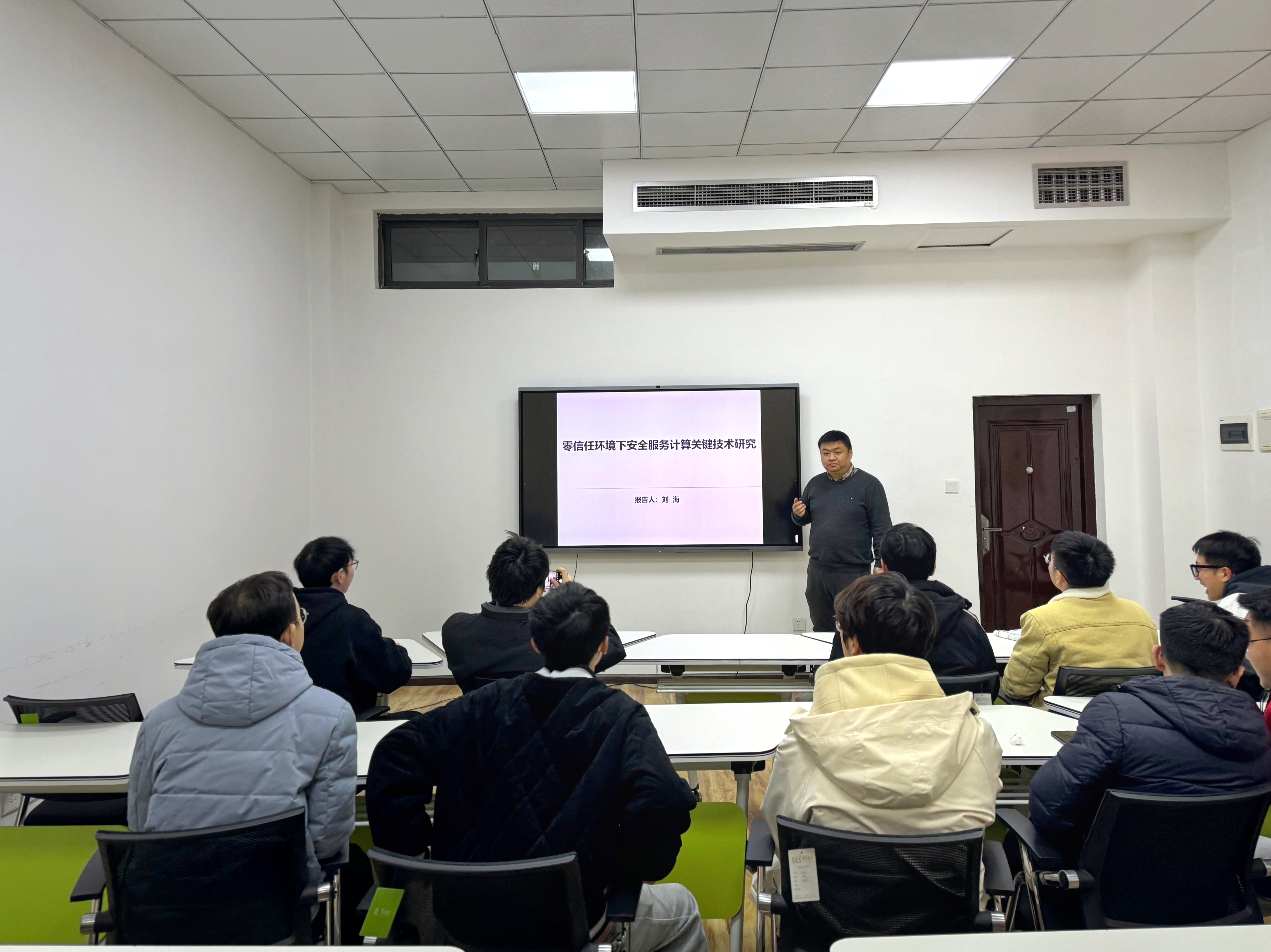 刘海博士的讲座题目为“零信任下安全服务计算的关键技术研究”。随着物联网、云计算和人工智能的快速发展,以高价值、低密度、海量异构的元数据为核心的服务计算已渗透到各行各业。传统的安全服务计算模型和方法均构建在信任环境下。但是在实际应用中,数据采集方、数据共享方以及数据计算方彼此是相互陌生、互不信任的,这就使得传统的安全服务计算模型和方法并不适应于零信任的现实应用环境。如果直接使用传统的安全服务计算模型和方法,就会出现采集数据可用性低、共享数据流通性差、数据计算结果价值低等问题。刘海博士针对适用于零信任环境下的服务计算模型和方法进行了探讨。