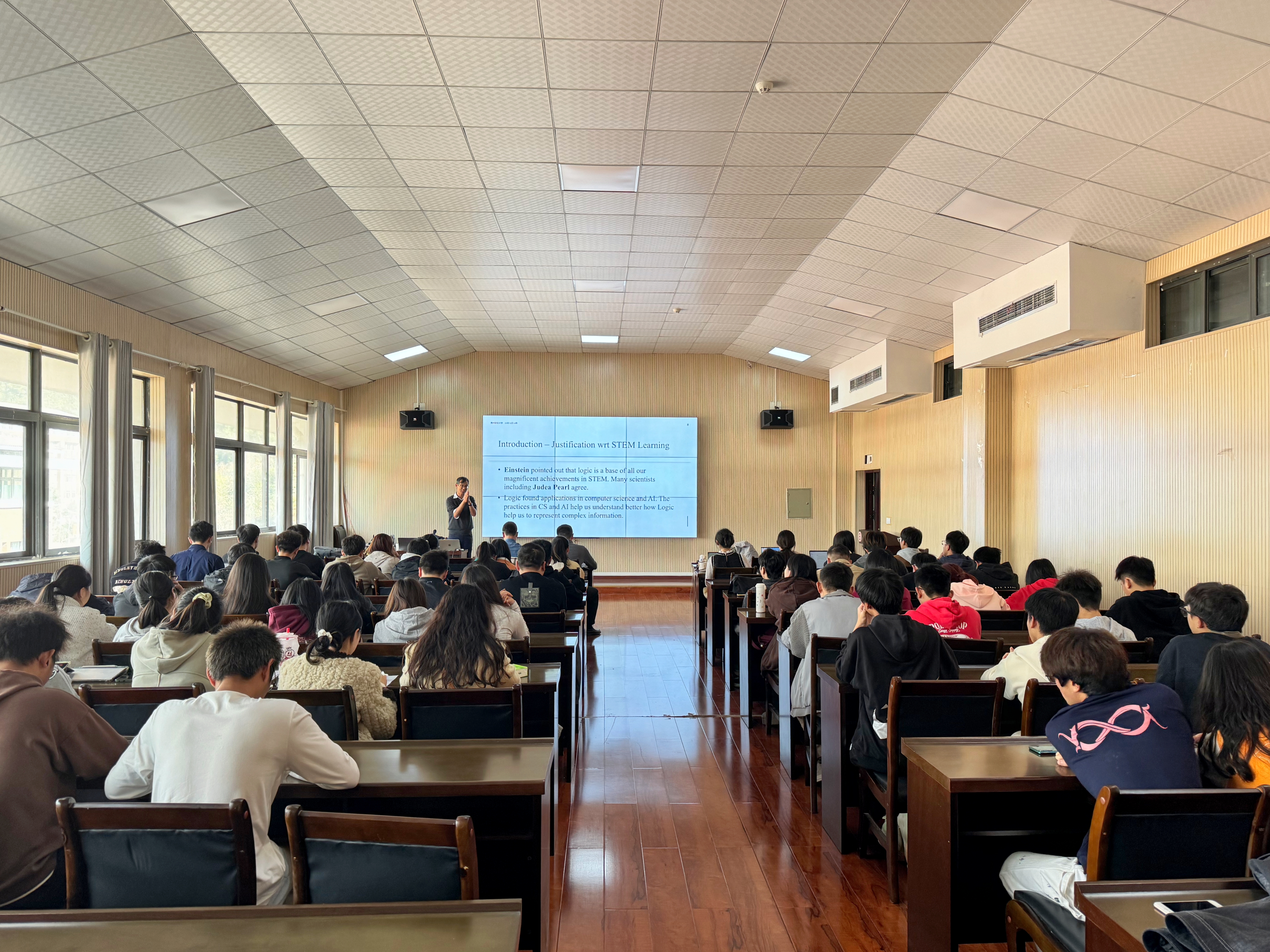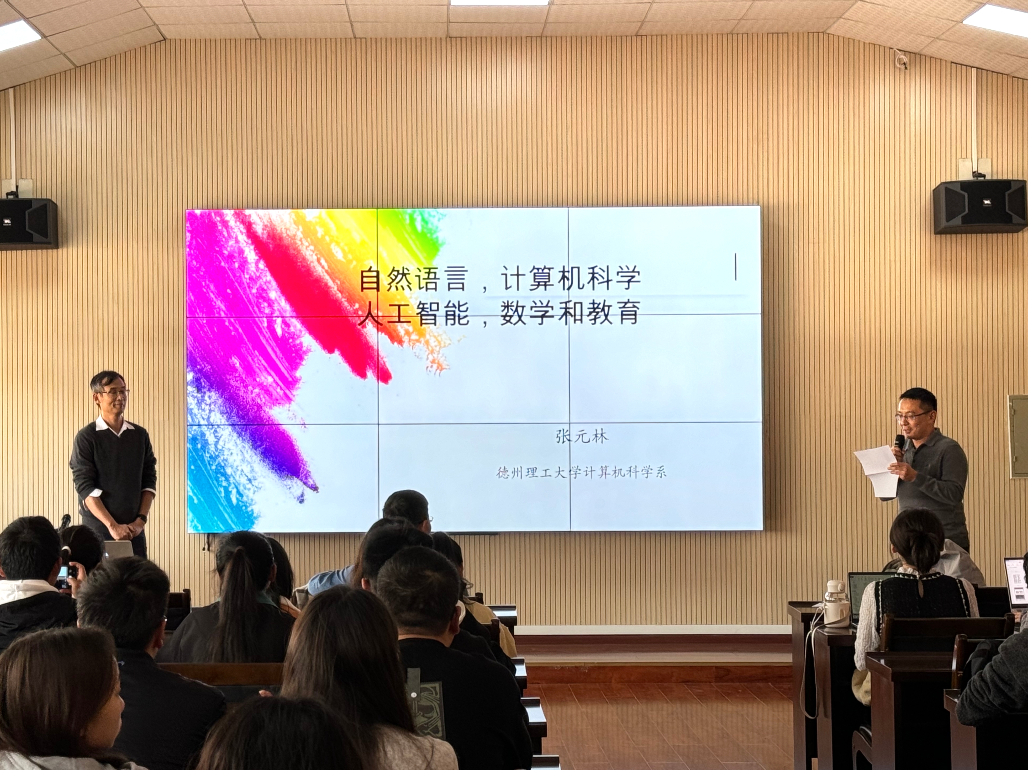 张元林博士的讲座题目是“自然语言,计算机科学,人工智能,数学和教育”。当今,人工智能正在对各行各业产生巨大而深远的颠覆式影响,大量的传统职业也许将不复存在,新兴的职业会应运而生。这使我们不得不重新思考:应该如何教育我们未来的一代?在这之中,有趣的是,人工智能本身就为我们提供了一些思路和方法。目前人工智能有两个大的方向:一个方向以大语言模型为代表,另一个是基于逻辑的方向,它们各有所长,目前还没有一个人工智能的理论或系统能够使两者完美结合。然而,人脑却天生具备两者的能力。理工科教育的一个共识是它的各个科目是紧密联系的,在中小学甚至是大学教育中应该有机地整合各相关学科的教与学,但具体教什么怎么教一直是理工教育研究的一个核心问题,基于逻辑的人工智能提供了一个答案:逻辑以及计算机科学的方法提供了一个自然、简洁、清晰地整合各个学科学习的理论。基于这个理论,再辅以基于大语言模型的人工智能技术,人们可以开发出有效帮助学生学习理工科目的智能系统。张元林博士是从“智能的窗口—自然语言”谈起,然后到计算机科学、人工智能和数学,张博士还用一些其它数理学科的概念来演示逻辑是怎样统一这些概念的。