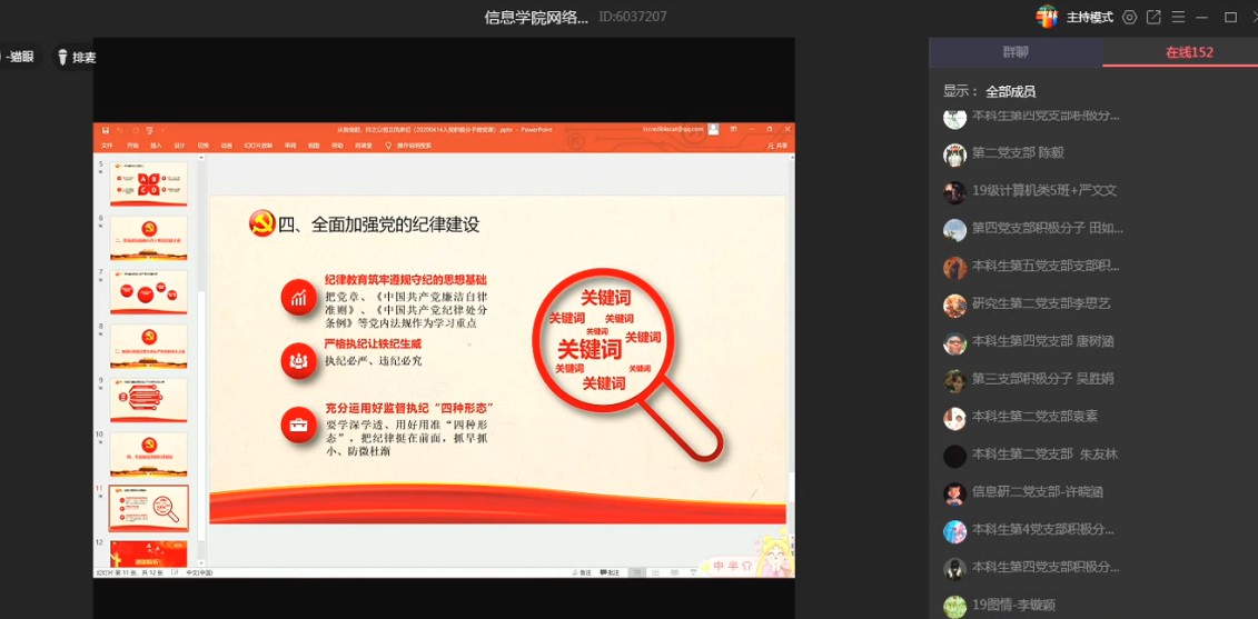 在抓好党员疫情期间线上学习教育的同时,也不放松对入党积极分子的思想教育,此次线上微党课的开展,对扩大学习教育覆盖面,提升党课学习效果起到积极作用,学院将继续创新党员和入党积极分子教育方式和载体,确保学习教育持续在线。