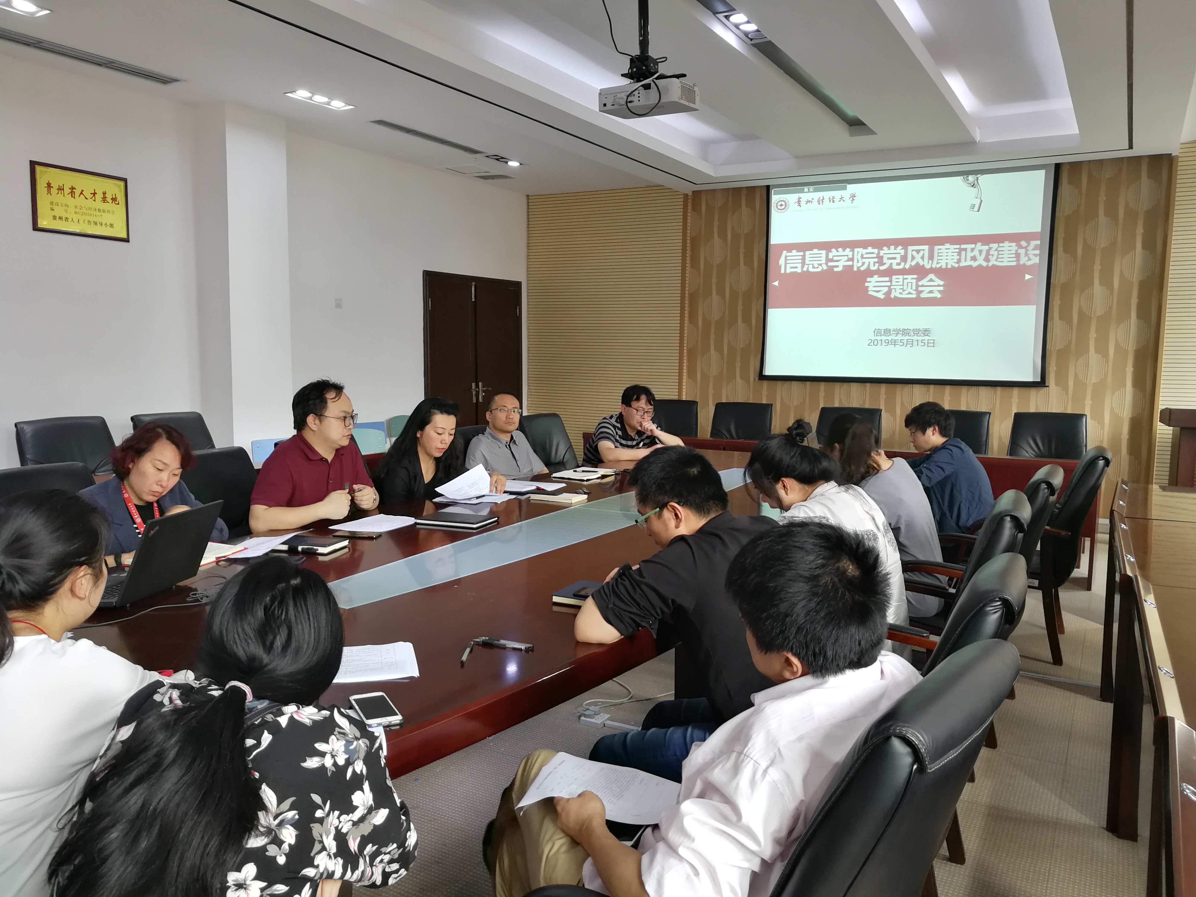 在志学楼427召开2019年党风廉政建设专题会议。学院党委书记卿春、院长邓明森、学院党委副书记何瑞、副院长陈琴、副院长郭长睿、全体党支部书记、系副主任、科室负责人参加会议。会议由卿春主持。