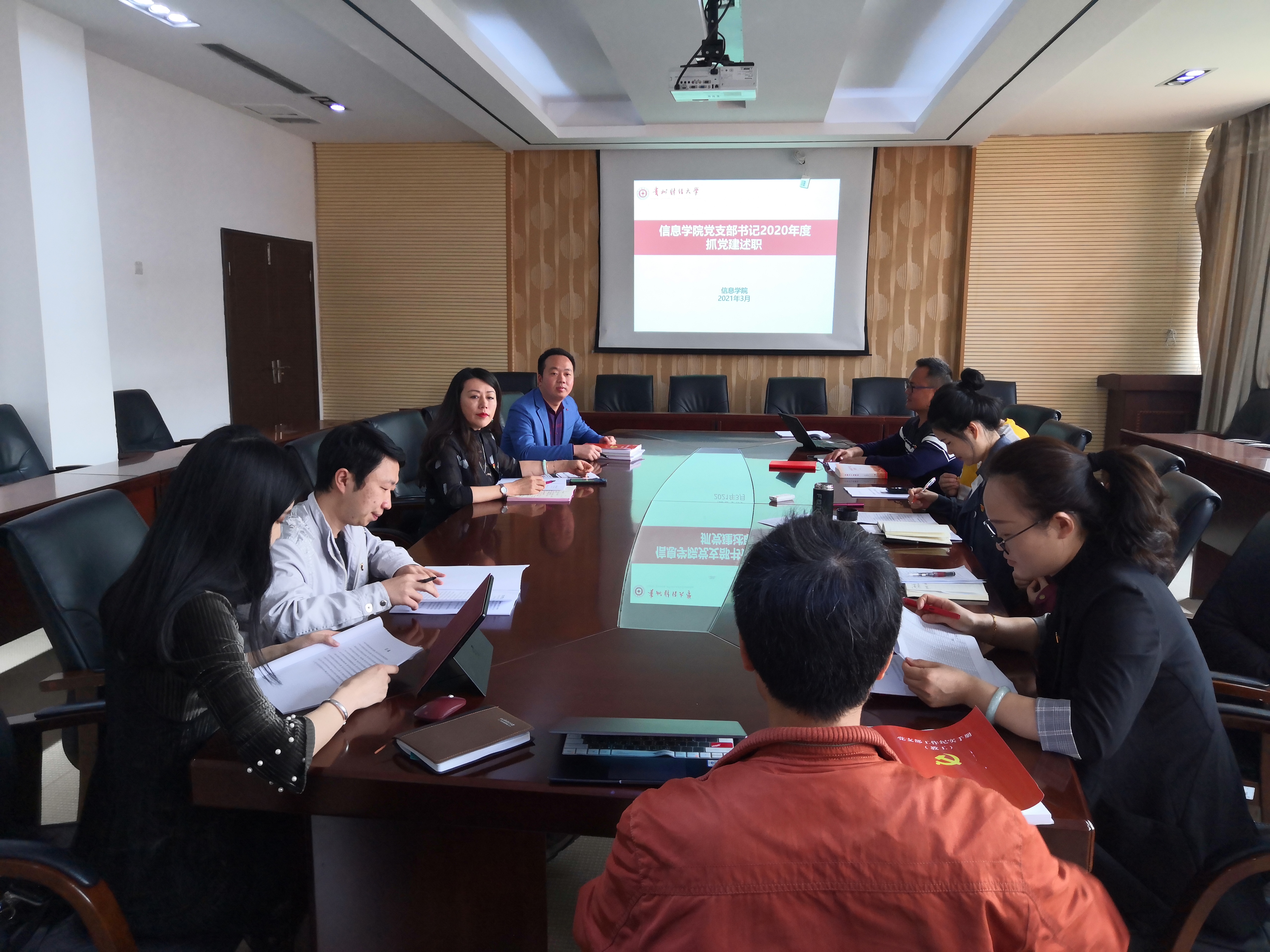 在学院会议室召开2020年度党支部书记抓党建述职评议会议,学院党委书记卿春、全体支部书记参加会议,卿春主持会议。