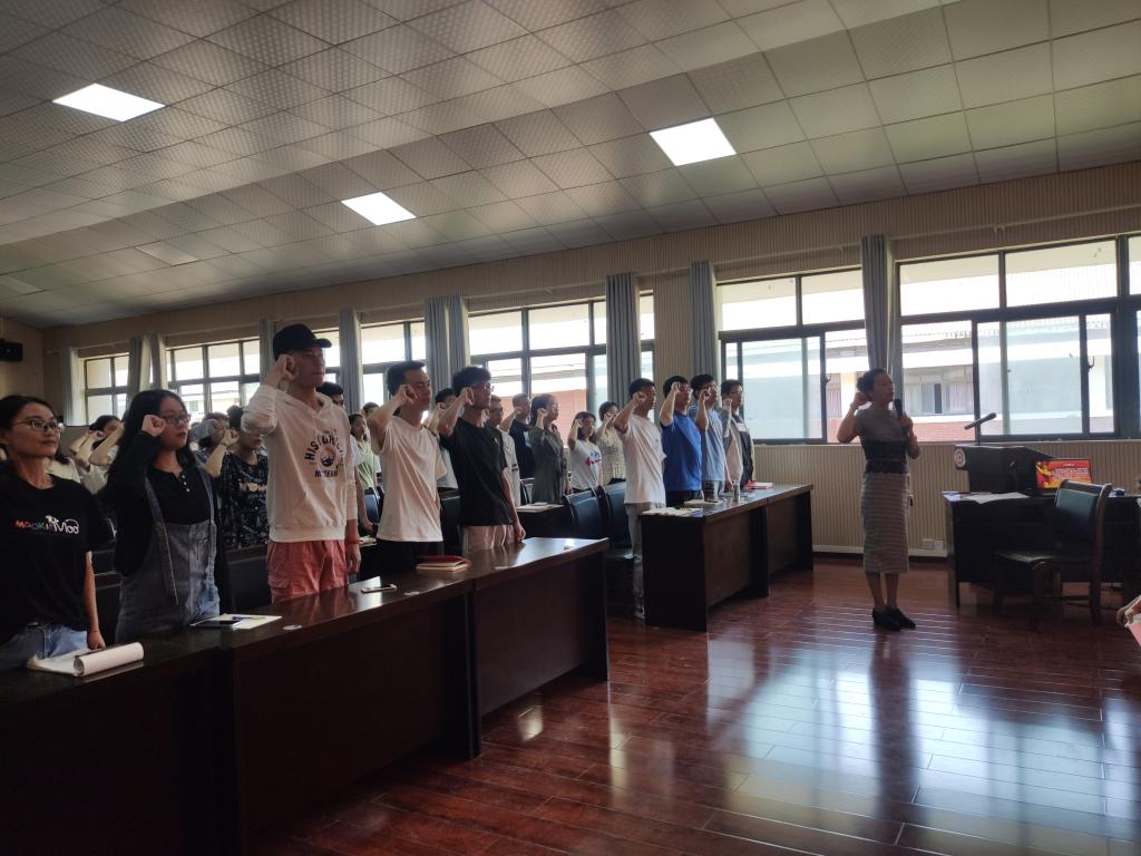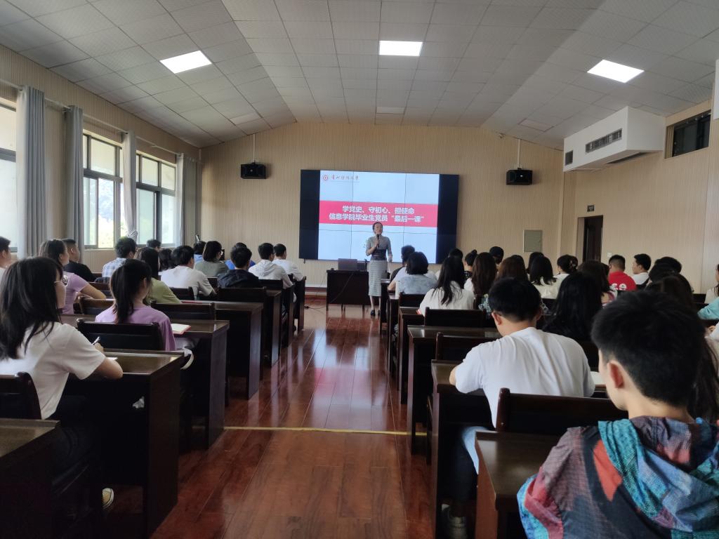 在志学楼506开展毕业生党员最后一课活动,学院党委书记卿春、专职组织员谭健和全体毕业生党员参加。