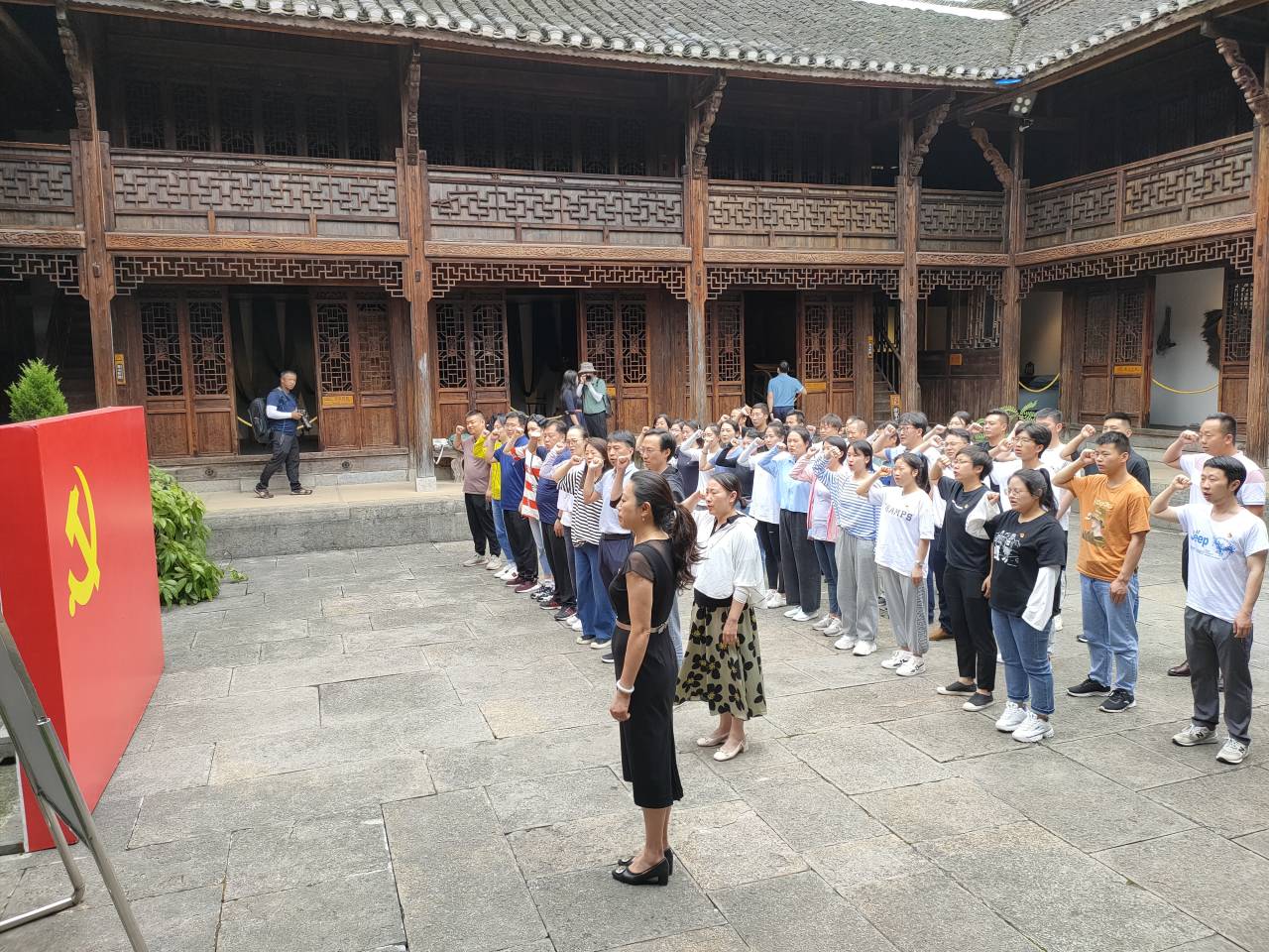 在会议会址,全体党员重温了入党誓词,“我志愿加入中国共产党,拥护党的纲领,遵守党的章程,履行党员义务……”,誓言铮铮,句句千钧,大家再次接受了心灵的洗礼。
