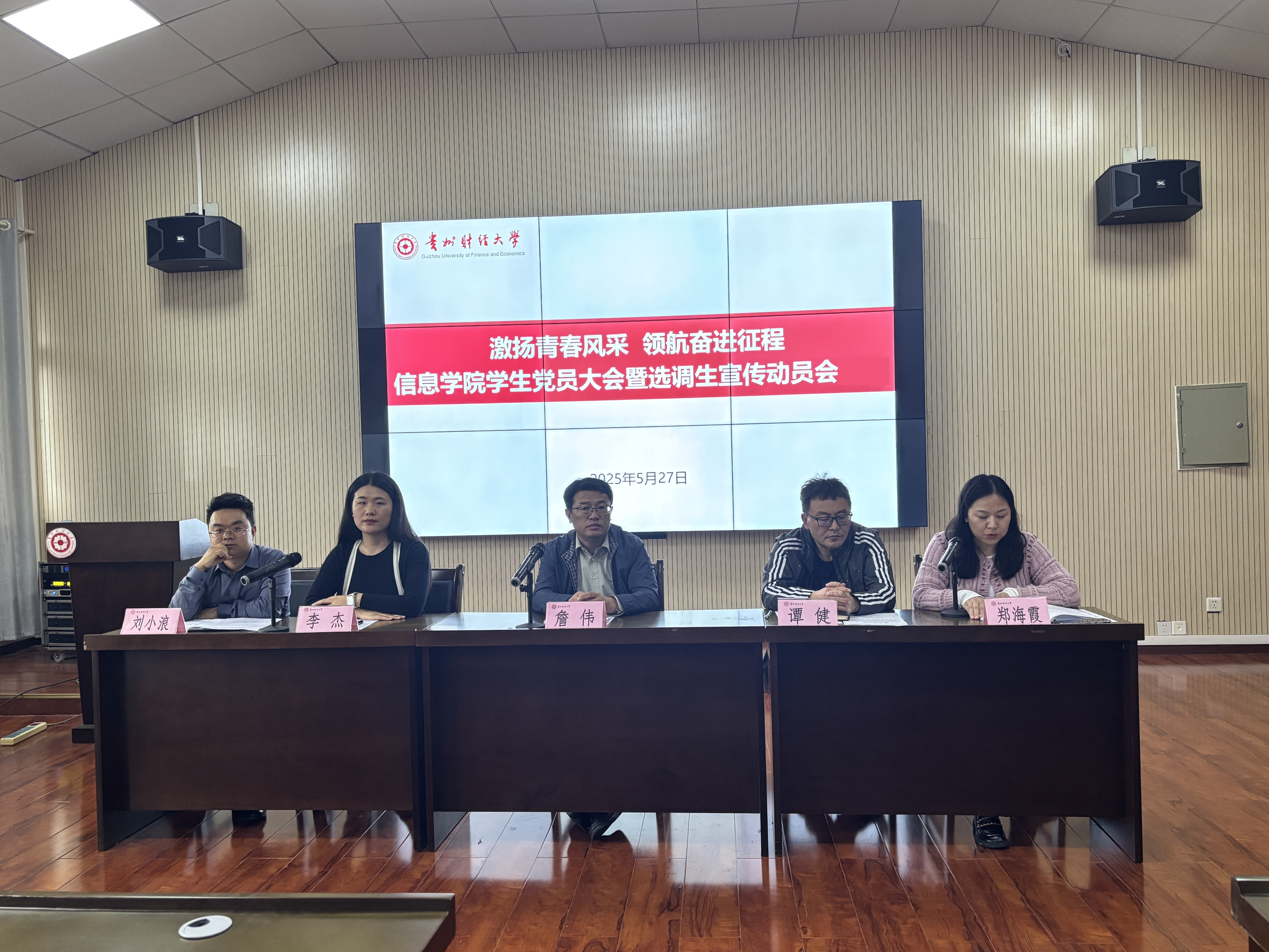 在志学楼506报告厅召开主题为“激扬青春风采 领航奋进征程”的学生党员大会暨选调生宣传动员会。学院党委书记詹伟、党委副书记谭健、团委书记李杰、学生科副科长郑海霞、辅导员刘小浪出席会议,全体学生党员参加。