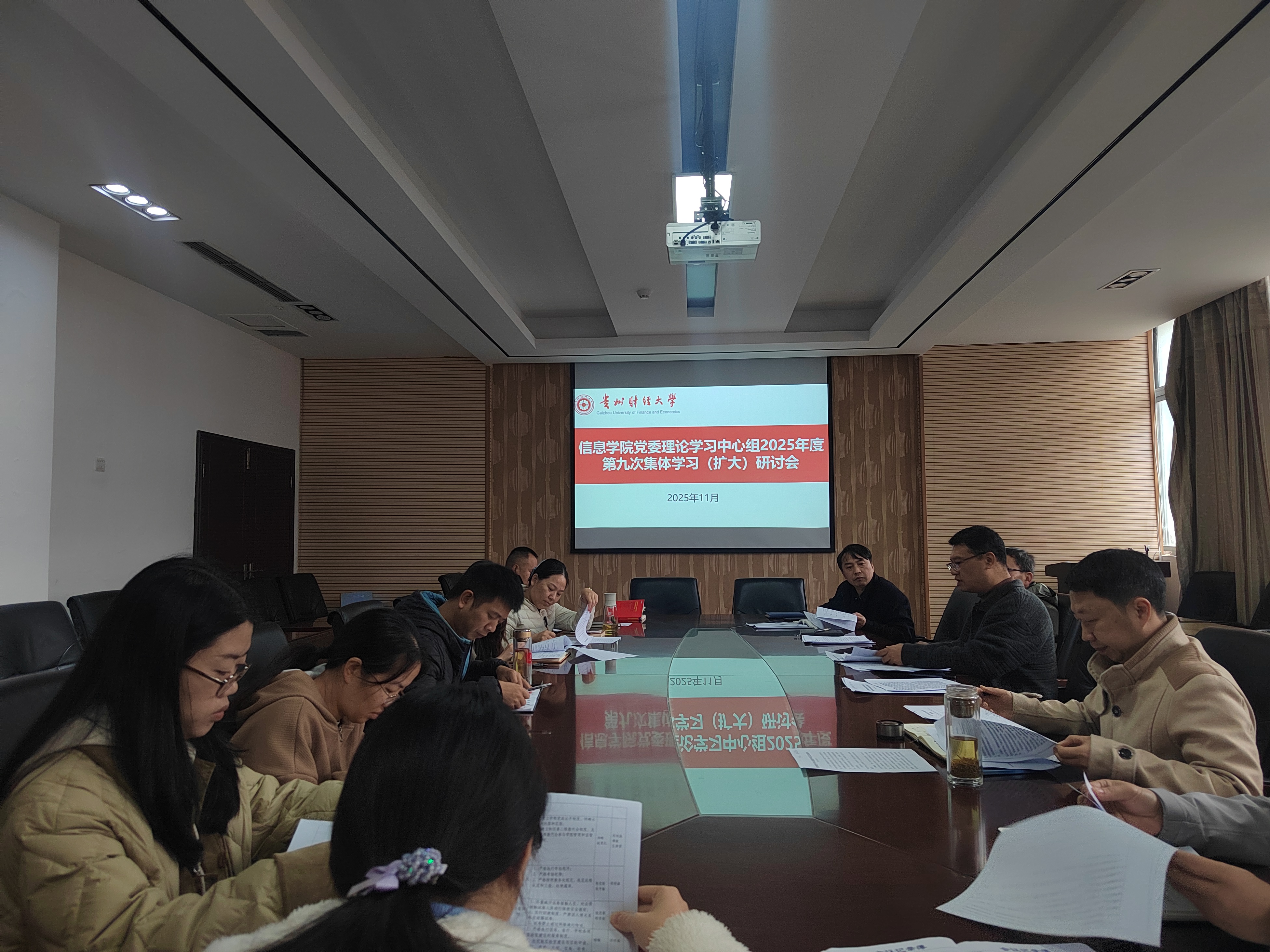 党委理论学习中心组举行2025年度第九次集体学习(扩大)研讨会在志学楼427会议室召开,专题学习党的二十届四中全会精神。副院长崔鹏,各党支部书记、各系部(科室)负责人列席会议。院党委书记詹伟主持会议并讲话。