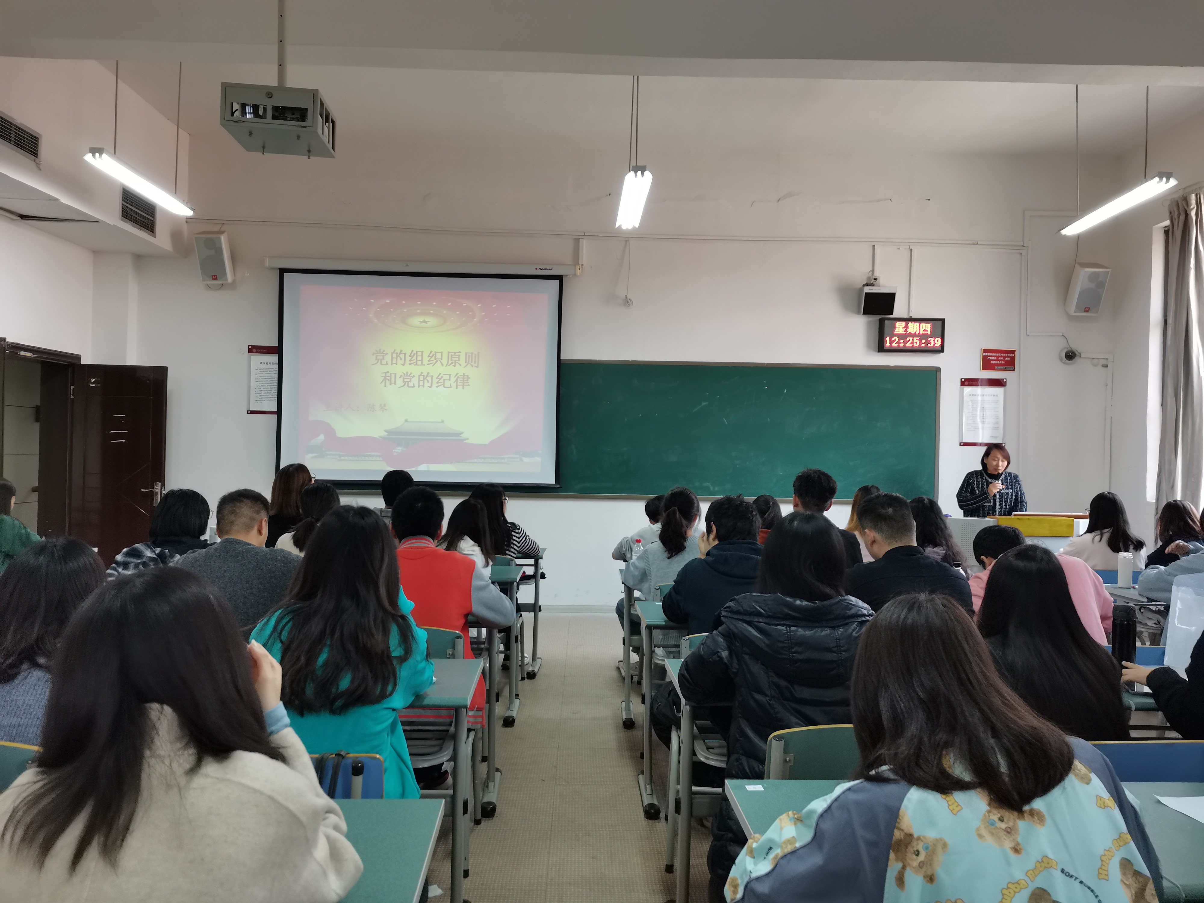 11月19日中午,香蕉漫画 党委纪检委员陈琴在志学楼414为香蕉漫画 入党积极分子培训班的学员们上党课,陈琴以“党的组织原则和党的纪律”为题作了精彩讲授。