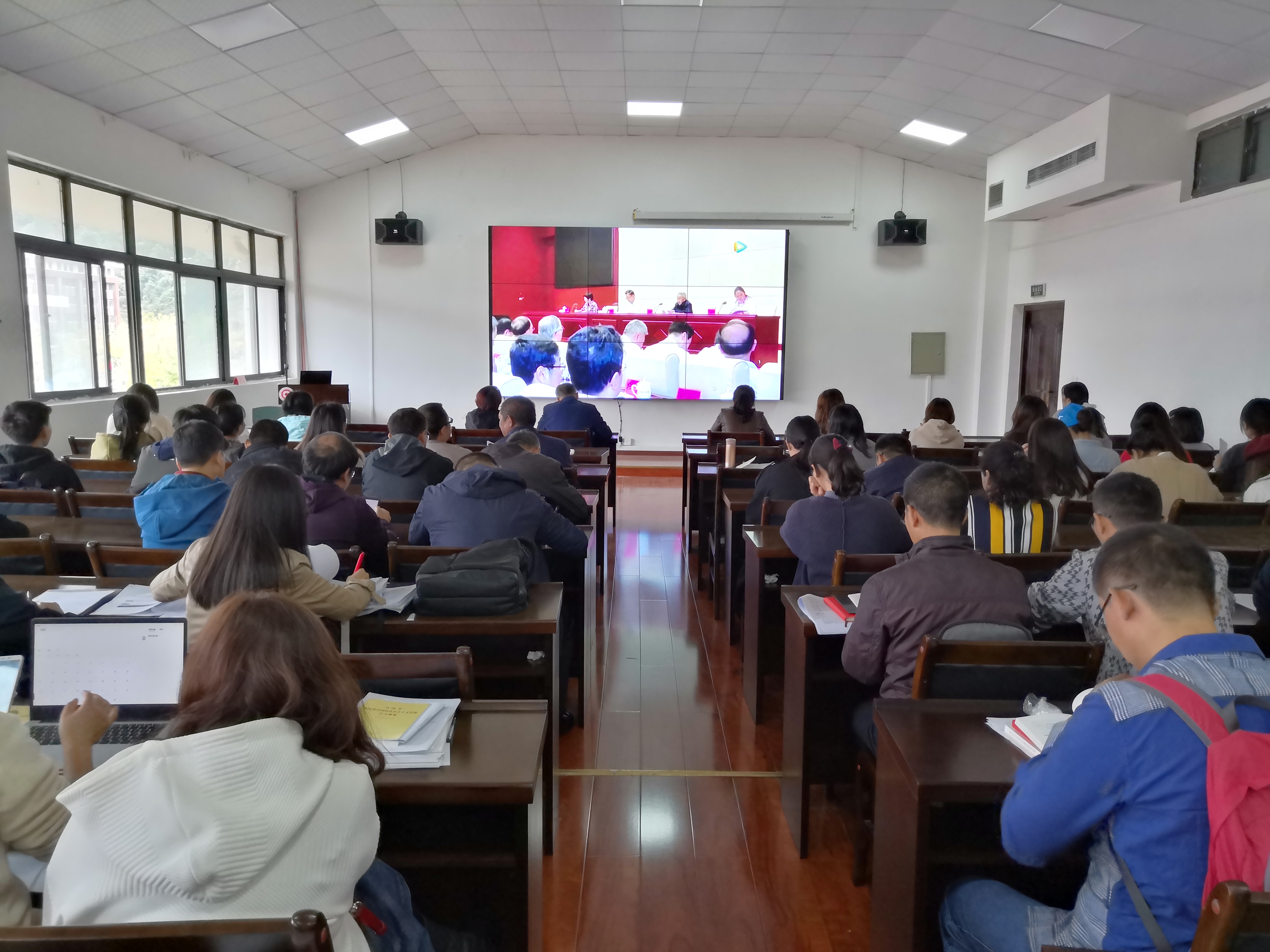 会上组织学院师生党员和教师观看学习黄大发、余留芬、邓迎香等先进典型在省委理论学习中心组专题报告会上的报告视频。