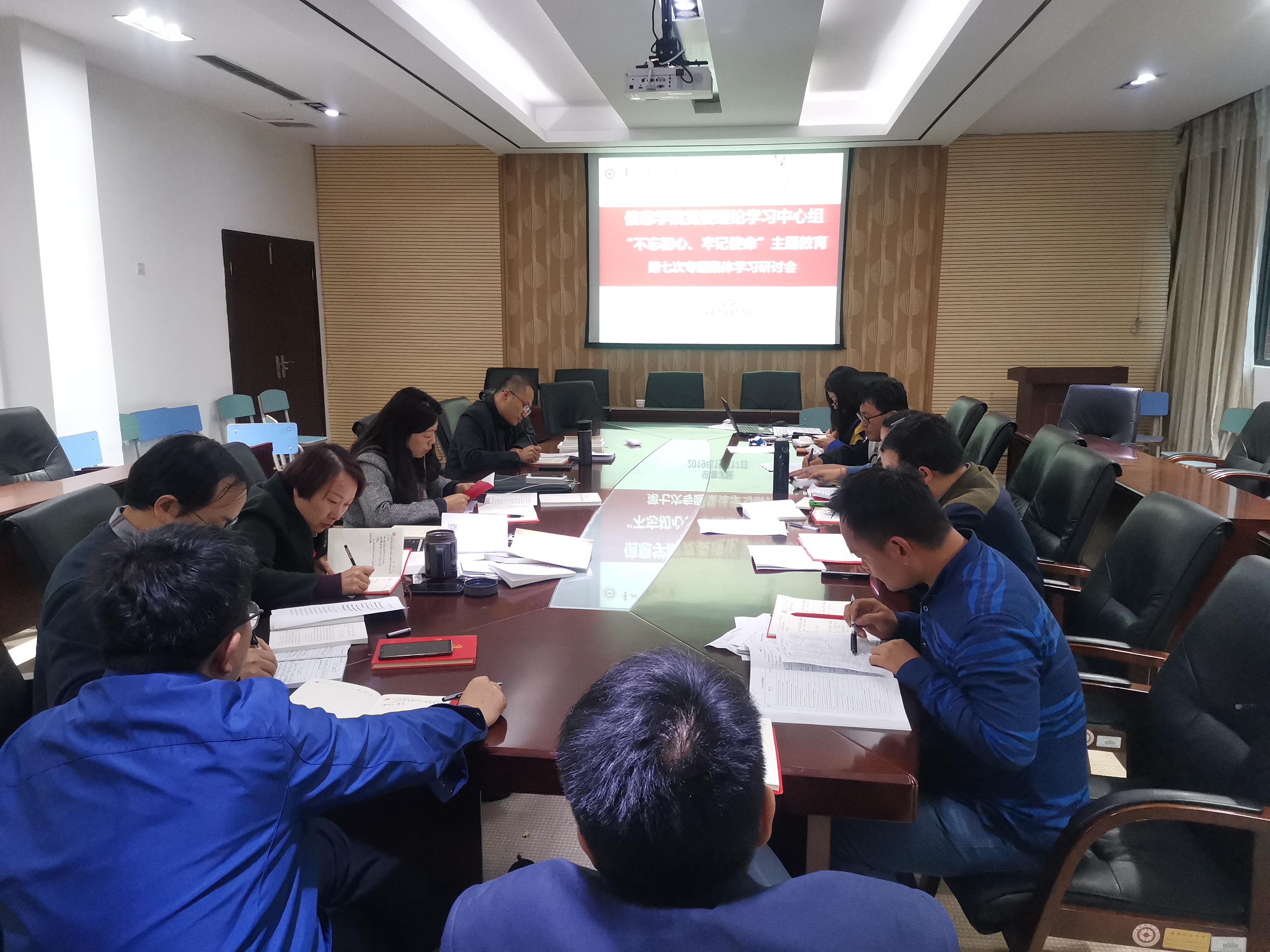 党委理论学习中心组于10月17日下午5点半在志学楼427会议室召开“不忘初心、牢记使命”主题教育第七次专题集体学习研讨会,学院领导、各系(科室)负责人、党支部书记参会,卿春主持会议。