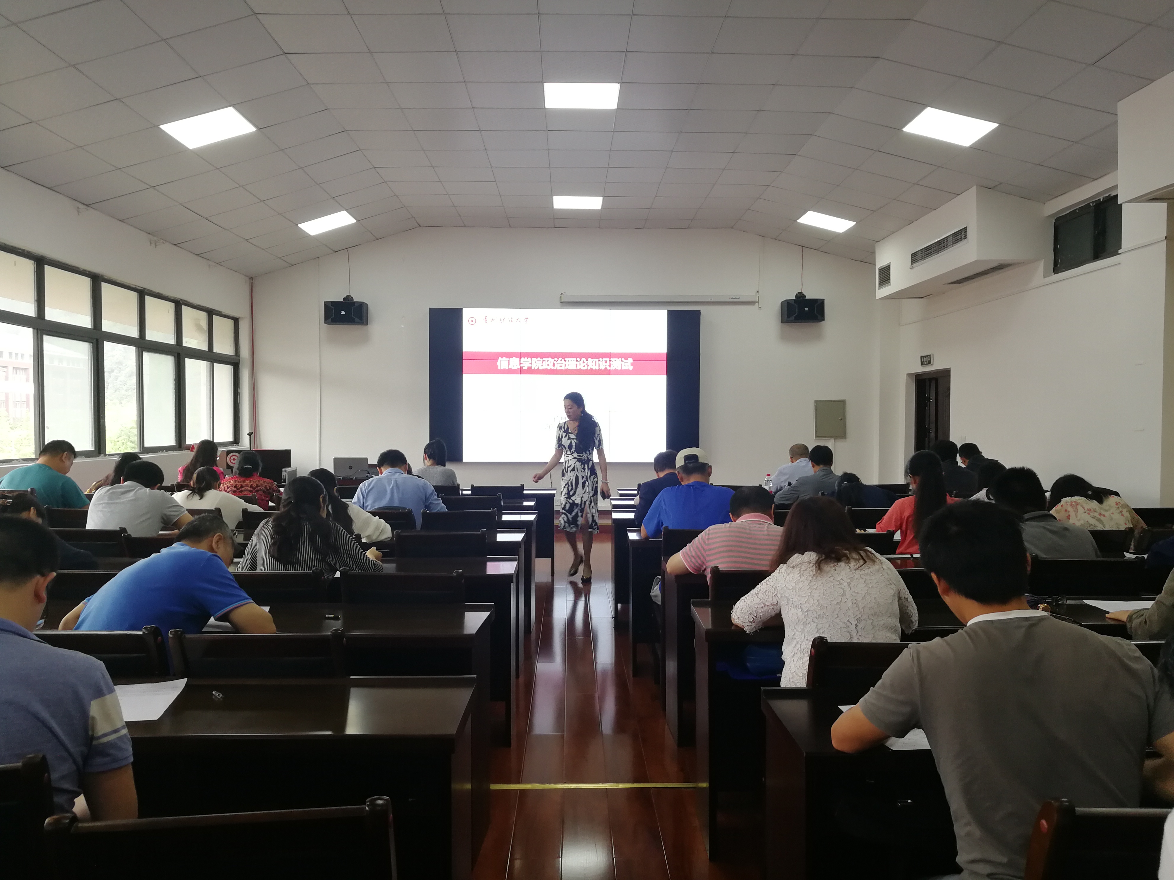 在志学楼506组织教职工进行政治理论知识测试,全院共60余名教职工参加,学院党委书记卿春监考。