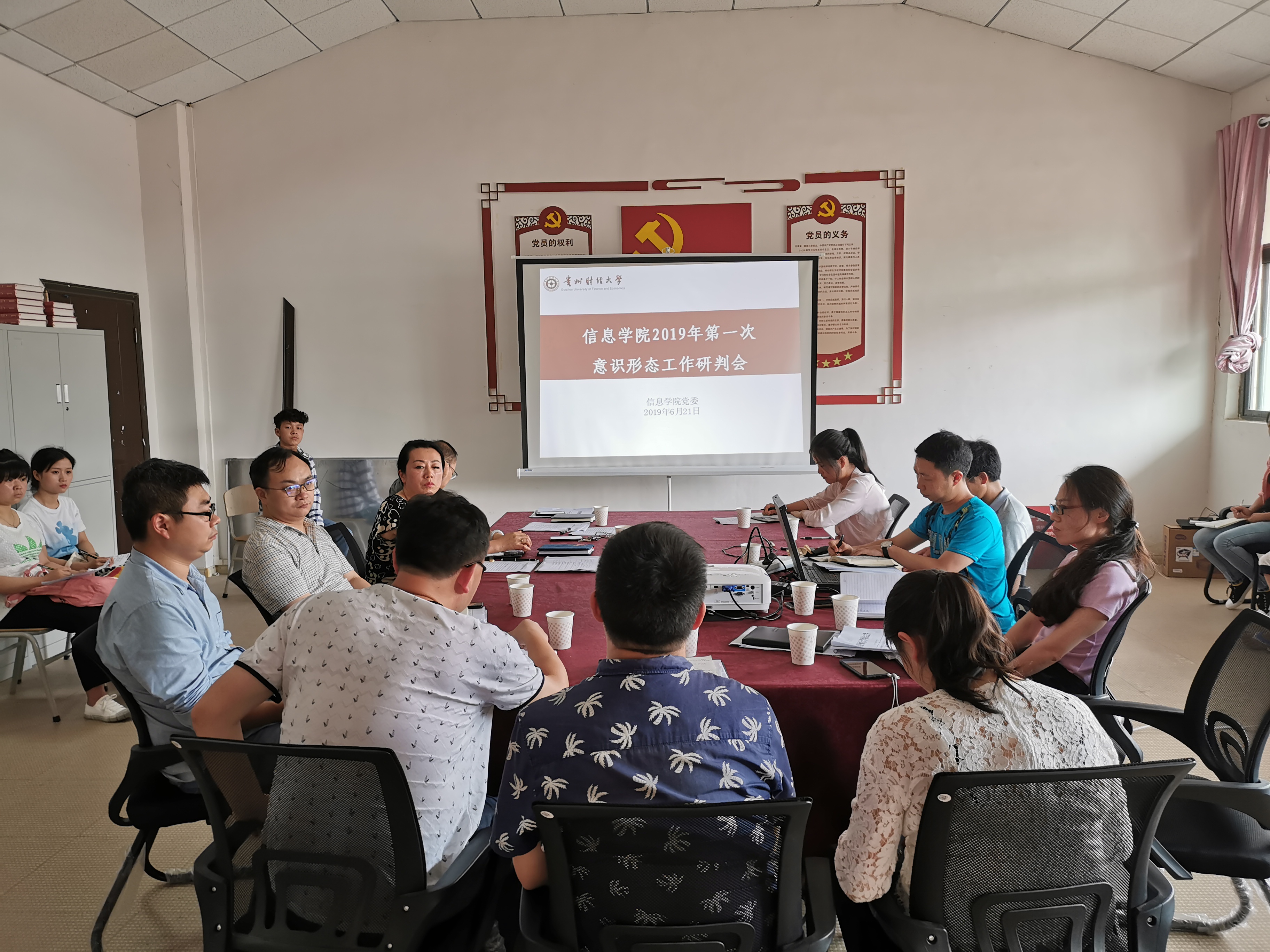 在志学楼505党员活动室召开了2019年第一次意识形态工作研判会,学院党委书记卿春、院长邓明森、副书记何瑞、副院长郭长睿及学院各系、各科室负责人、党支部书记、学生代表参会,何瑞主持会议。