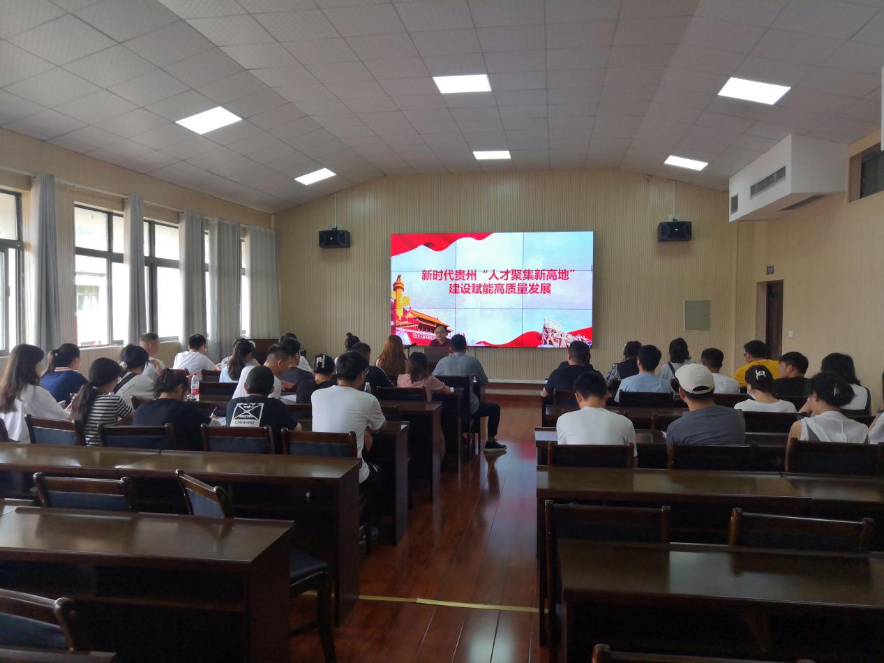 本网讯:(谭健 图文报道)6月25日中午,院长邓明森为全体研究生党员上了一堂题为《新时代贵州“人才聚集新高地” 建设赋能高质量发展》的专题党课。