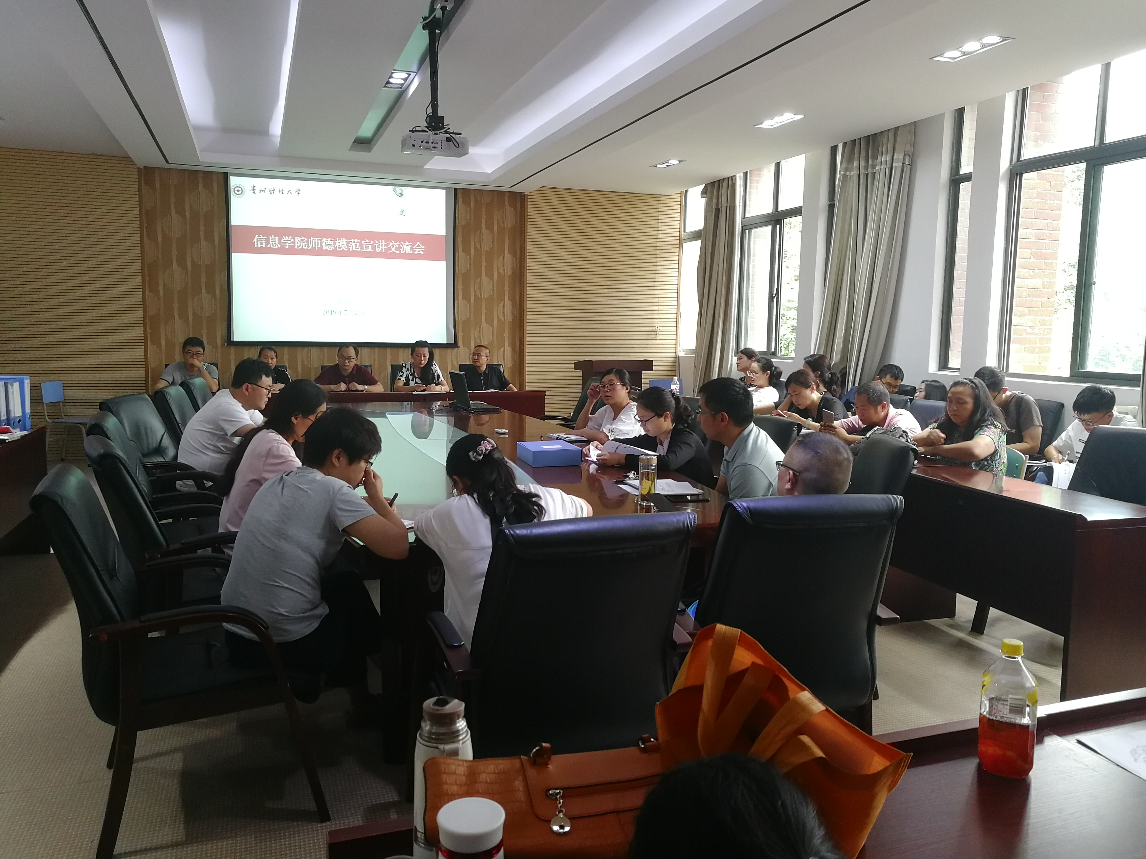 首先,由陈琴领学《新时代高校教师职业行为十项准则》,然后师德模范代表卿春围绕近几年在学校对口帮扶台江中自己电商扶贫的工作经历进行分享,分享自己在脱贫攻坚中所作出的努力和贡献,建议教师们严谨认真地对待教学工作,将培养学生放在首位,注重知识传承,培养奉献精神,为学院的发展做出自己的贡献。