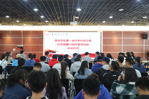 第一届学术科技节暨庆祝建国70周年系列活动启动仪式在笃行楼B栋一楼创新创业大厅举行。学院党委副书记何瑞、团委负责人李杰、团委学生会成员及学生代表共计150余人参加了本次启动仪式。
