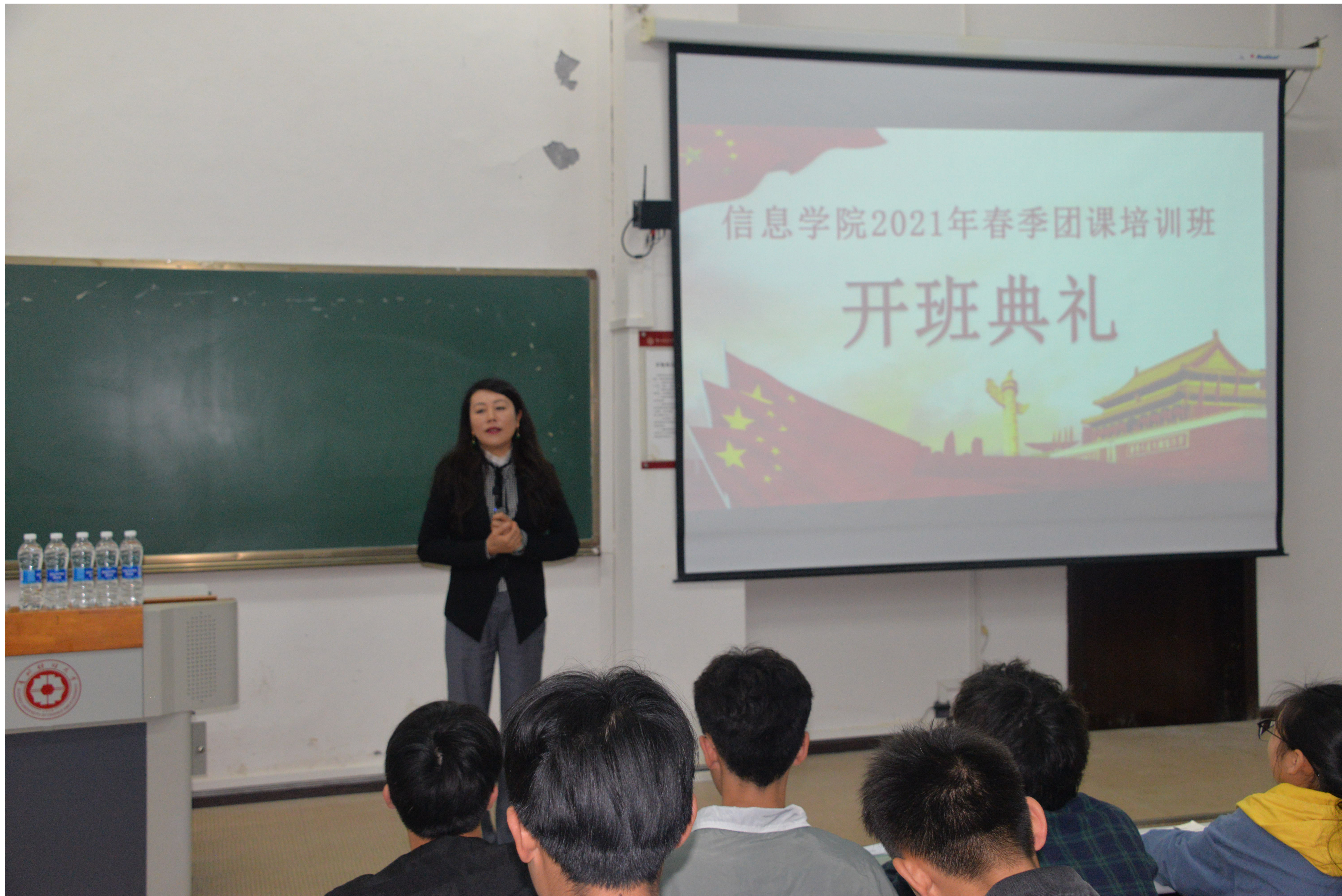 在进学楼3-1教室举行了2021年春季团课培训班开班典礼,学院党委书记卿春、团委负责人李杰及本期培训班全体学员参加。
