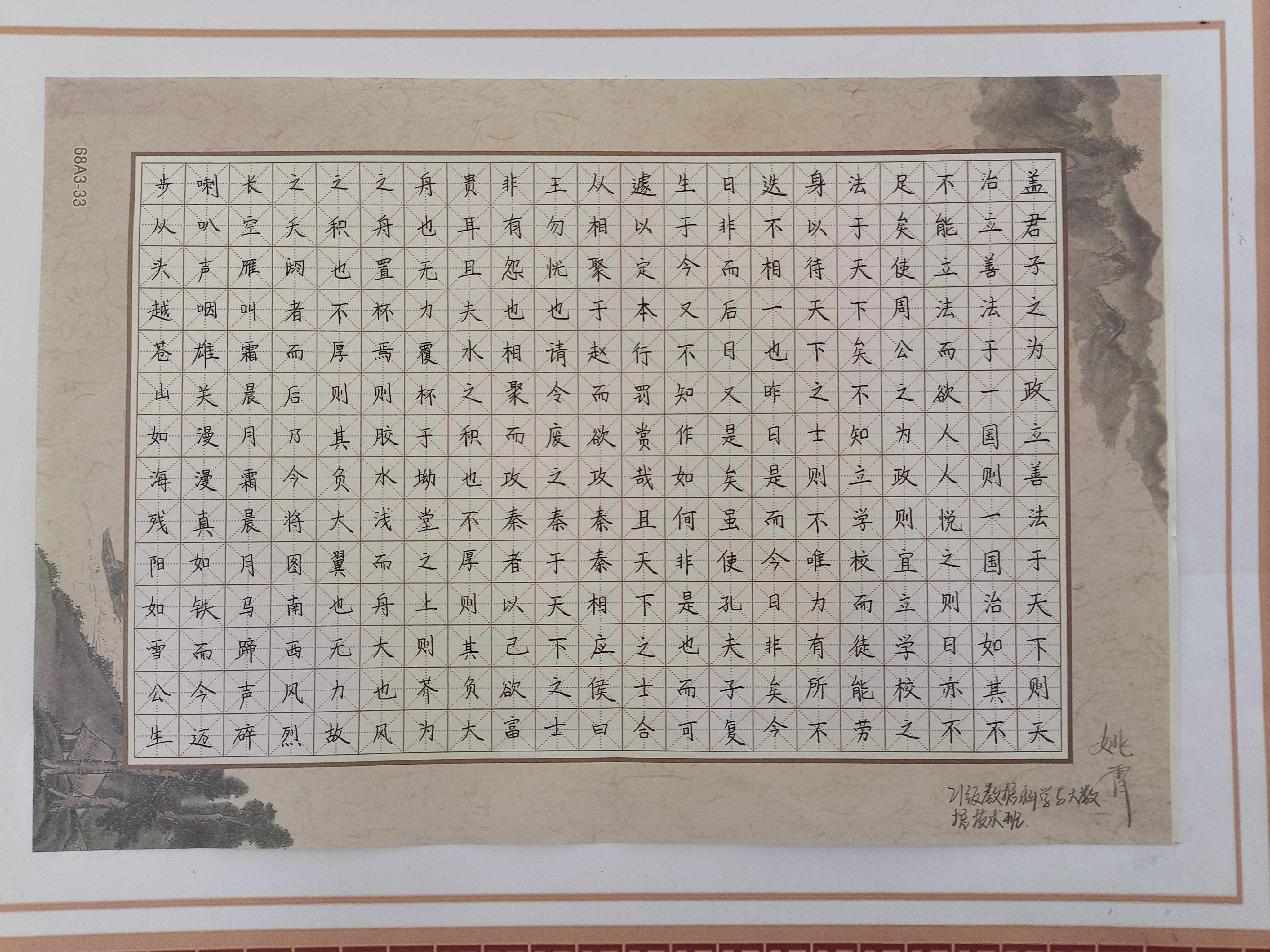 本次书法研习比赛精选了习近平总书记在一系列重要讲话、文章、访谈中引用的中国传统经典名句,涵盖爱国、为民、修身、创新、任贤、廉政等诸多方面。一幅幅赏心悦目的书法作品,不仅体现了同学们的书写功底,彰显着同学们对祖国汉字文化的热爱,更显示了同学们学习习近平总书记经典语录的所感所悟。