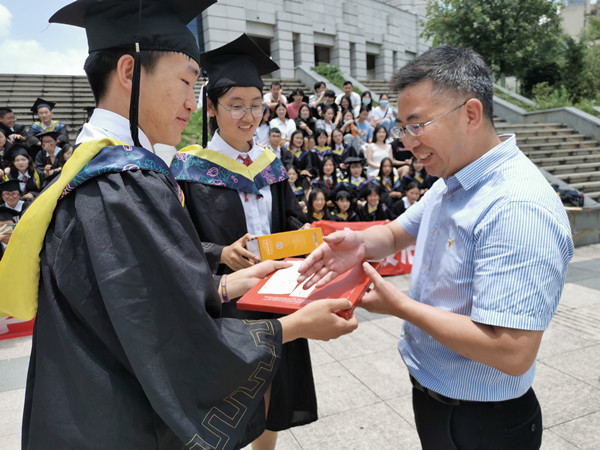 首先,朱克乾对端午的由来、屈原的故事进行了介绍,祝同学们端午安康,同时,对在场毕业生的顺利毕业表示祝贺、祝福和祝愿,并提出三点寄语,鼓励同学们坚信伟大的时代会越来越好,以后不论身处何方,都要坚定信心、努力奋斗,坚持相信真理、不断学习和克服困难的勇气,坚守自己的初心,多年以后仍是少年,祝福所有毕业生未来前程似锦、一路坦途、鹏程万里。朱克乾的讲话赢得在场同学的阵阵欢呼和掌声。