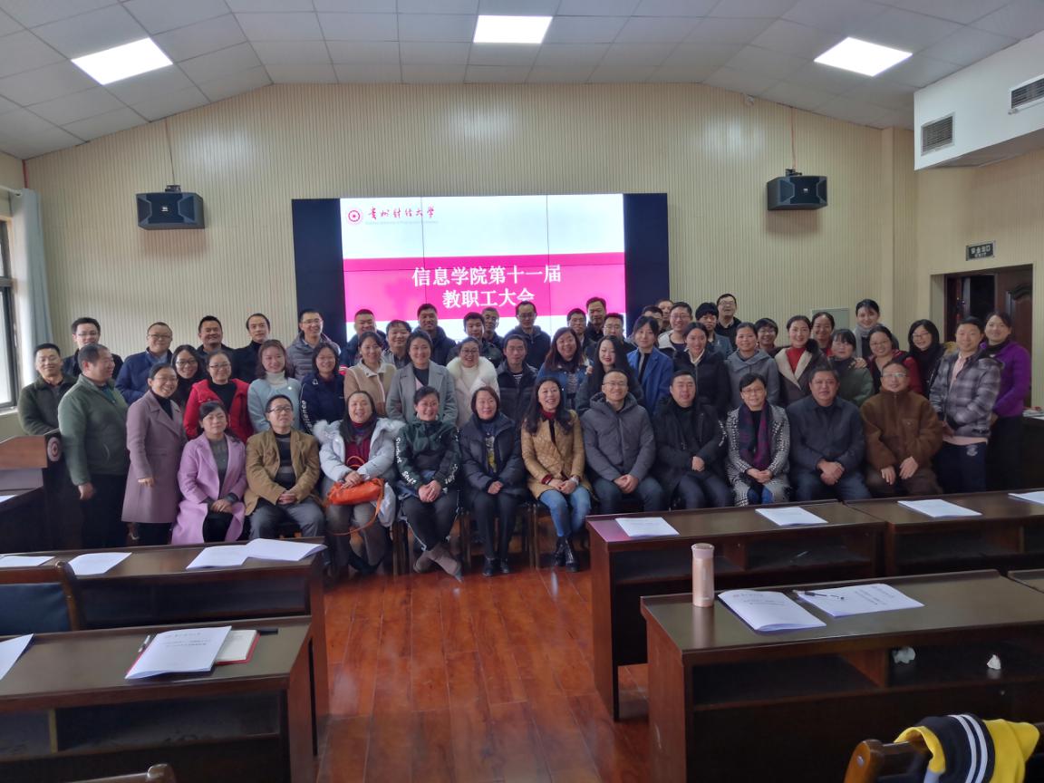 在志学楼506报告厅召开第十一届教职工大会,学院全体教职工参加会议,大会由学院党委书记卿春主持。