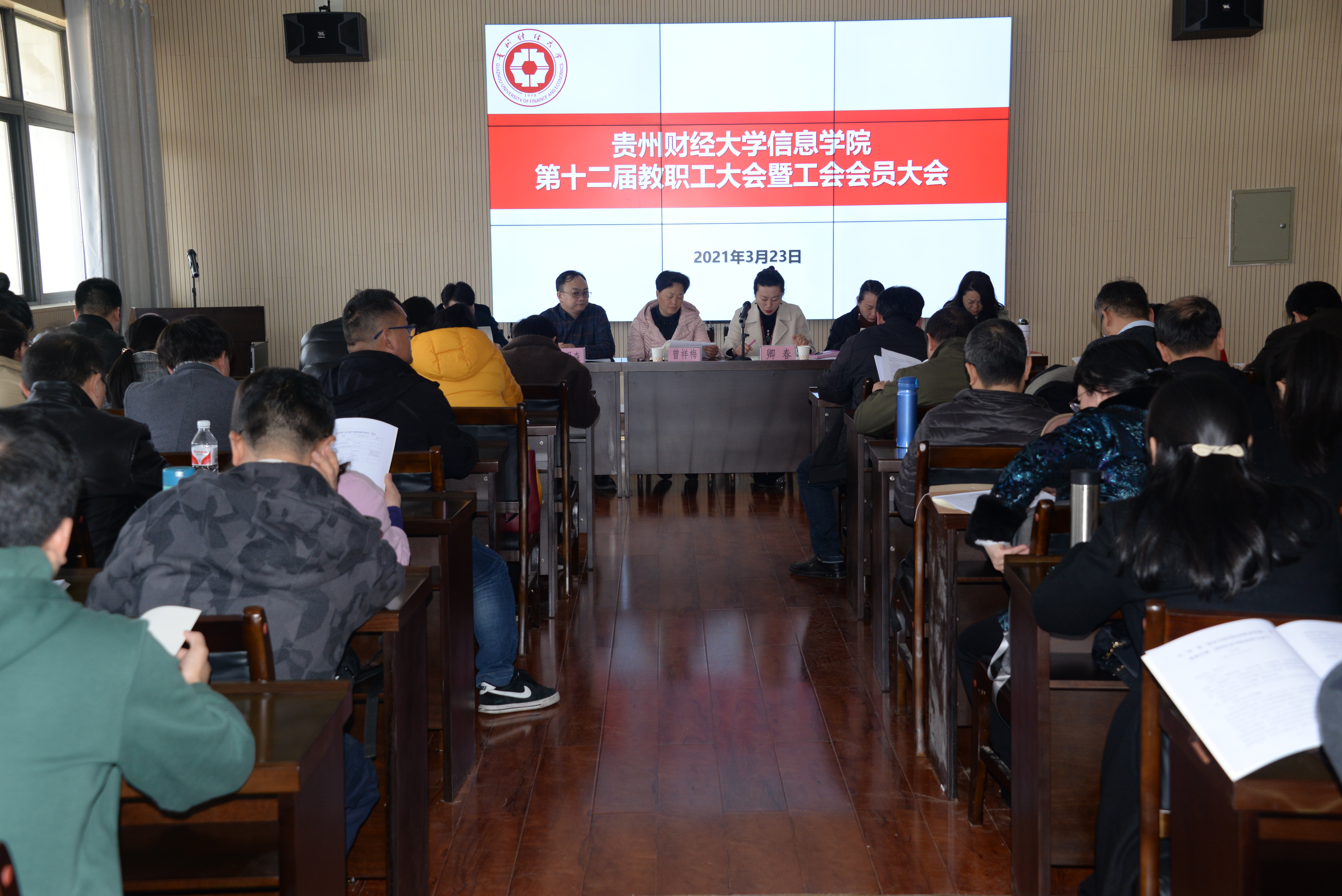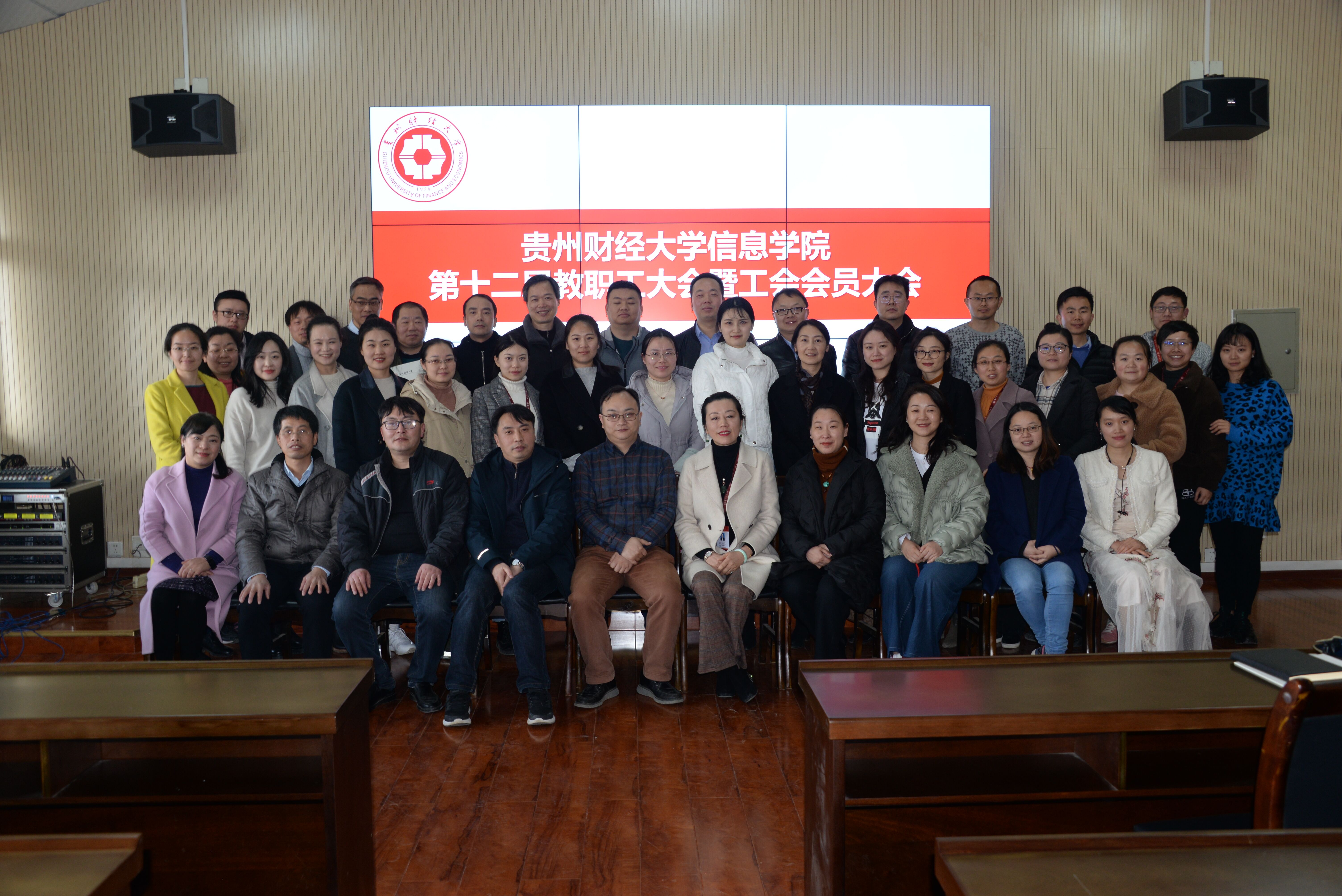 在志学楼506召开第十二届教职工大会暨工会会员大会,学院领导,全体教职工出席,校工会主席曾祥梅到会指导。
