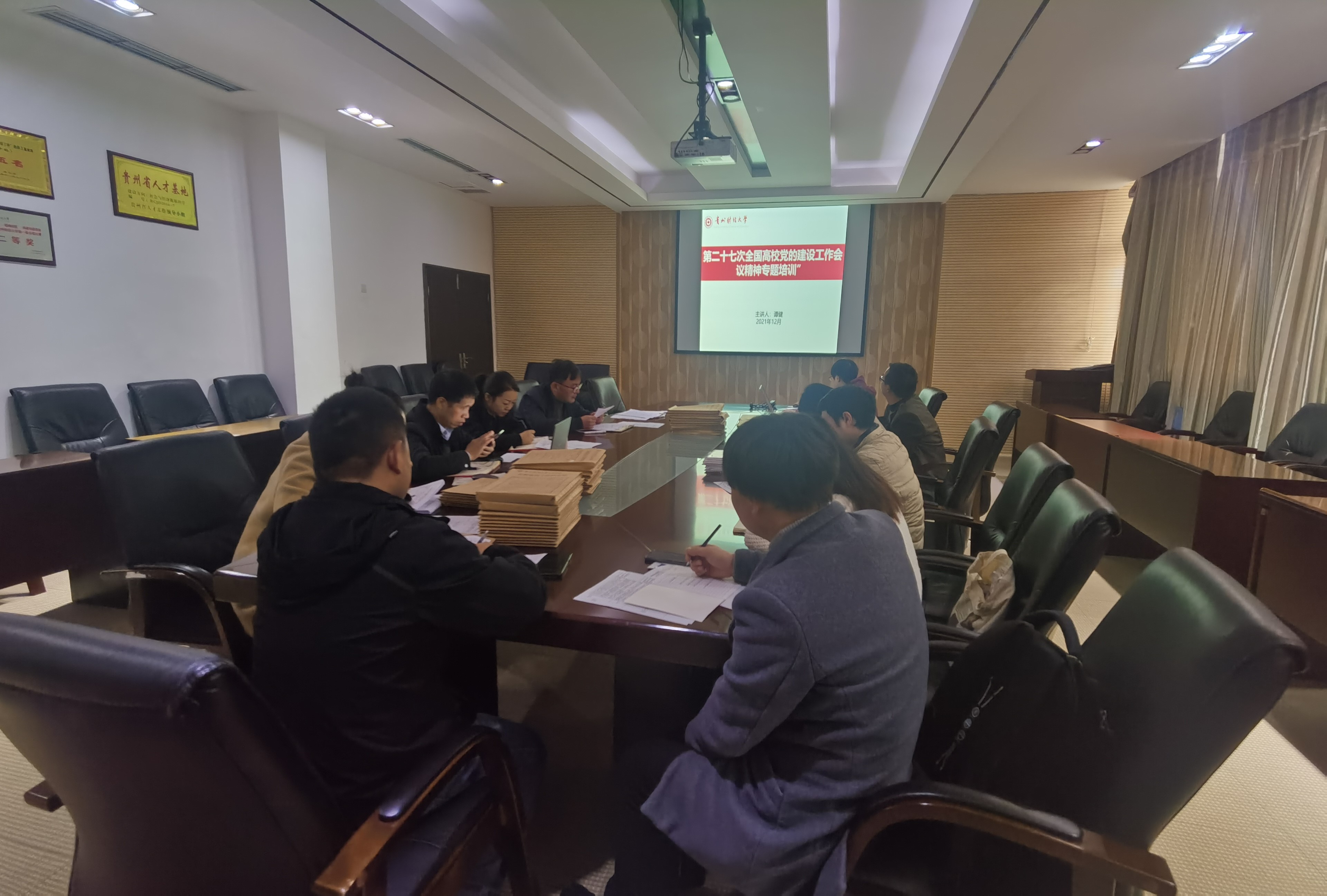 会上,谭健以学习贯彻“第二十七次全国高校党的建设工作会议”精神进行了专题培训,阐述了加强高校党建工作重大意义以及方向性、根本性等问题。