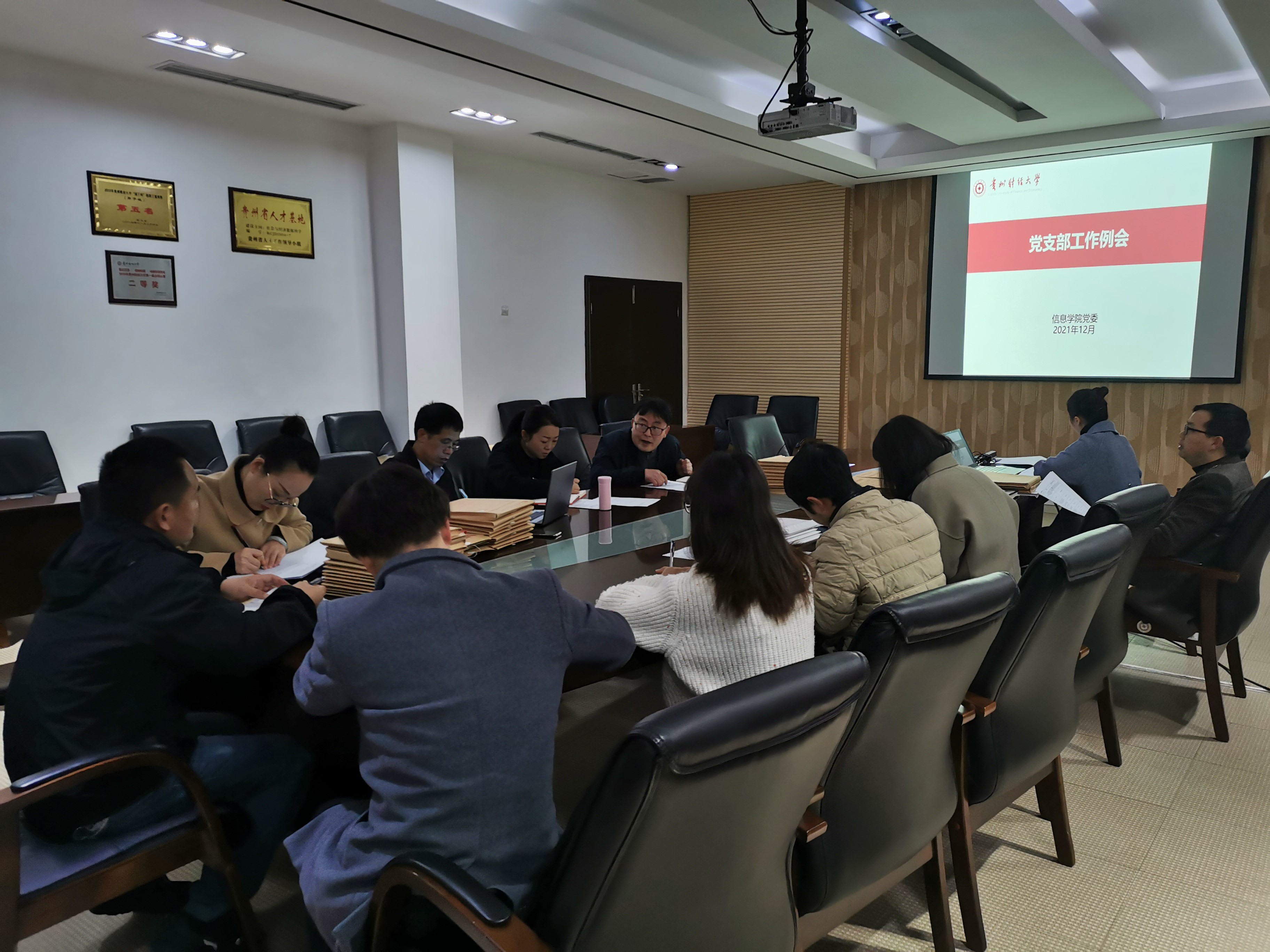 在志学楼427会议室召开了2021年12月党支部工作例会,学院党委副书记谭健、副院长梁敏、及学院各党支部书记、学生党建工作中心代表参会,会议由谭健主持。