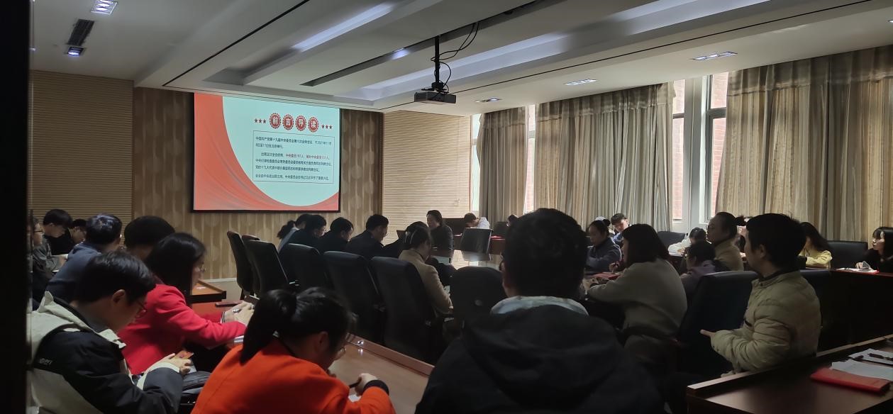 2021年12月7日,学院党委书记卿春在志学楼427给师生党员宣讲十九届六中全会和贵州省委十二届十次全会精神。学院党委班子成员、师生党员共100余人参加。
