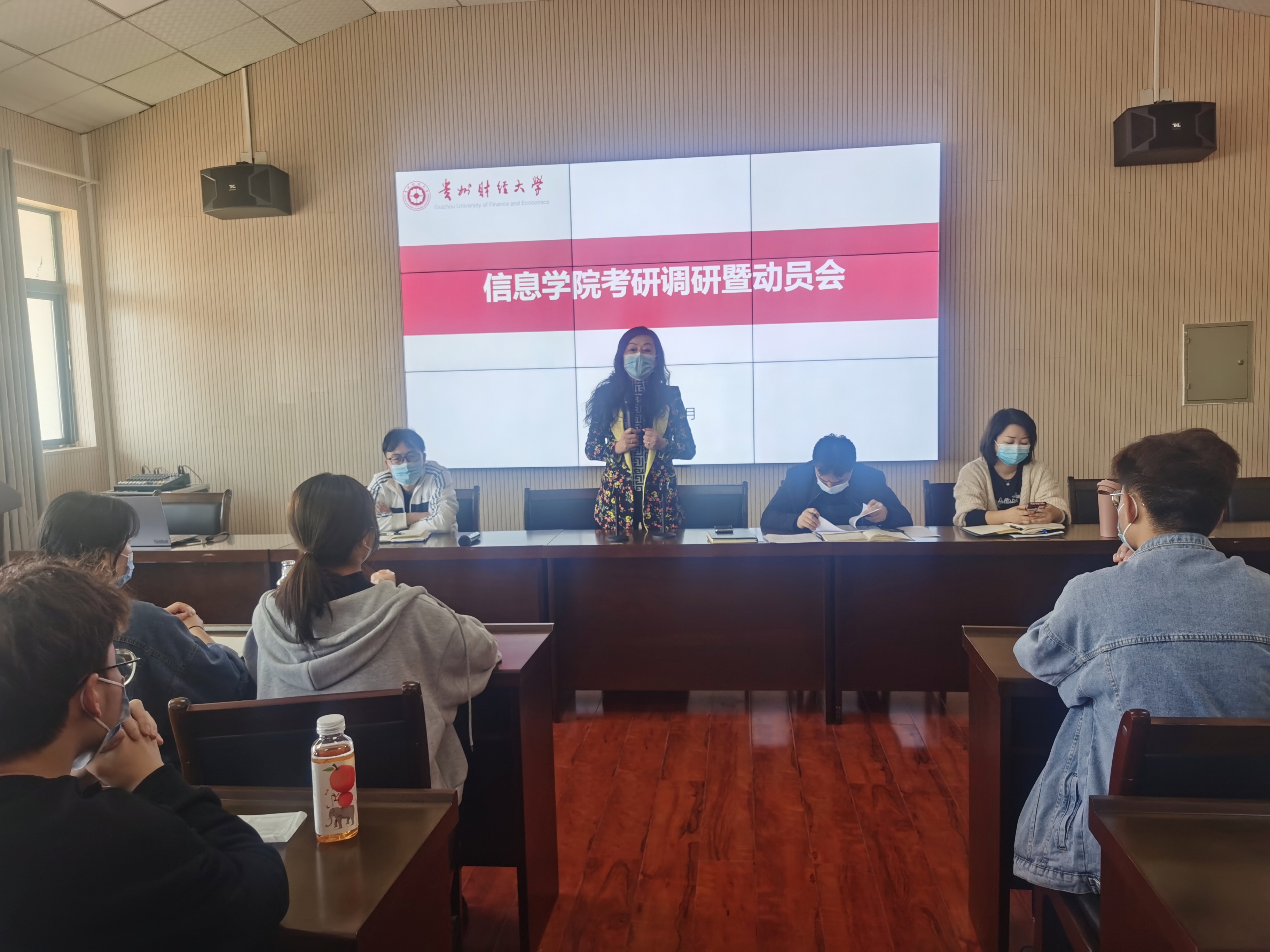 在志学楼506报告厅举行考研调研暨动员会,学院党委书记卿春、副书记谭健,副院长刘文江、梁敏,全体辅导员以及2019级、2020级学生参加会议。