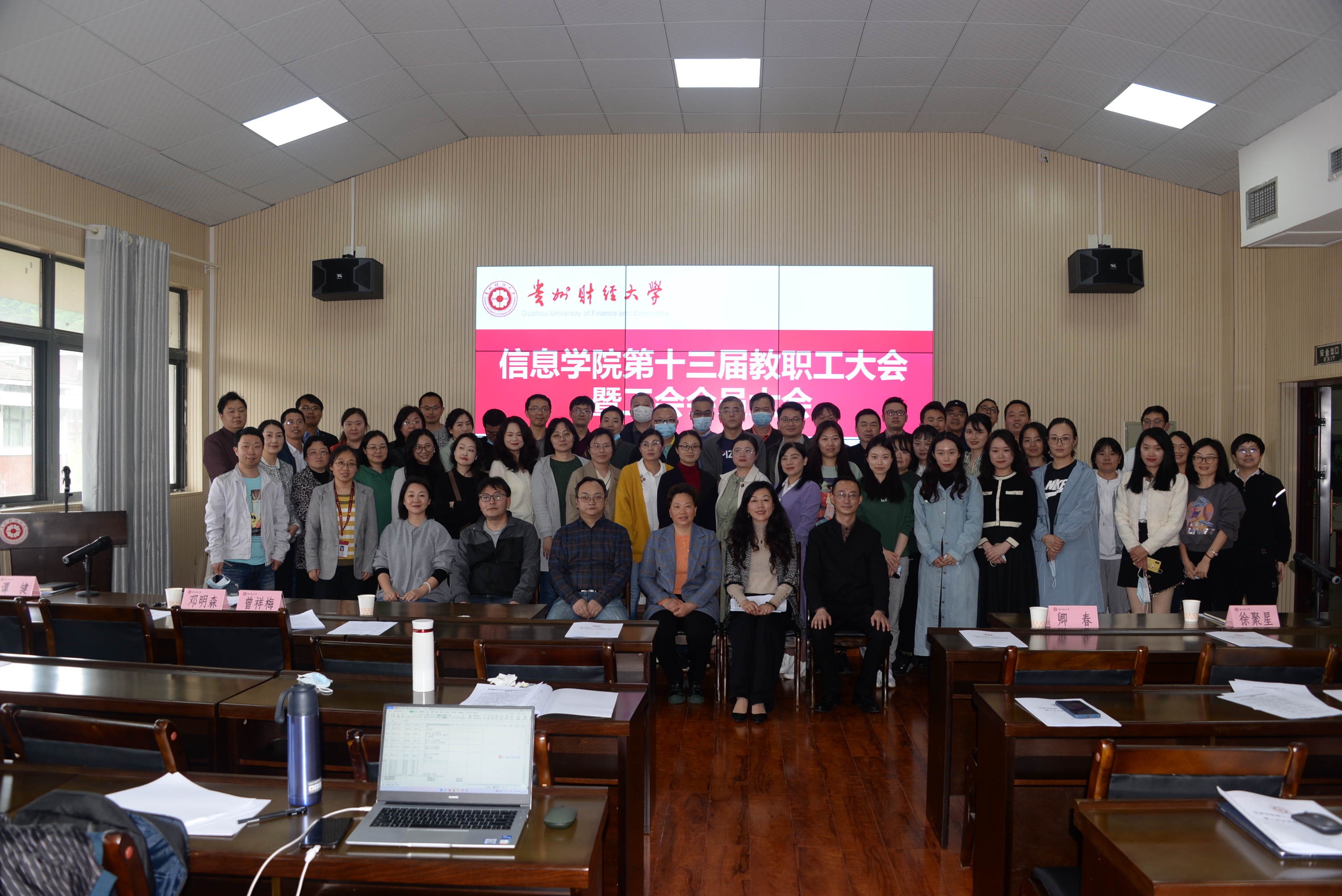 在志学楼506召开第十三届教职工大会暨工会会员大会,学院领导,全体教职工出席,校工会主席曾祥梅到会指导。