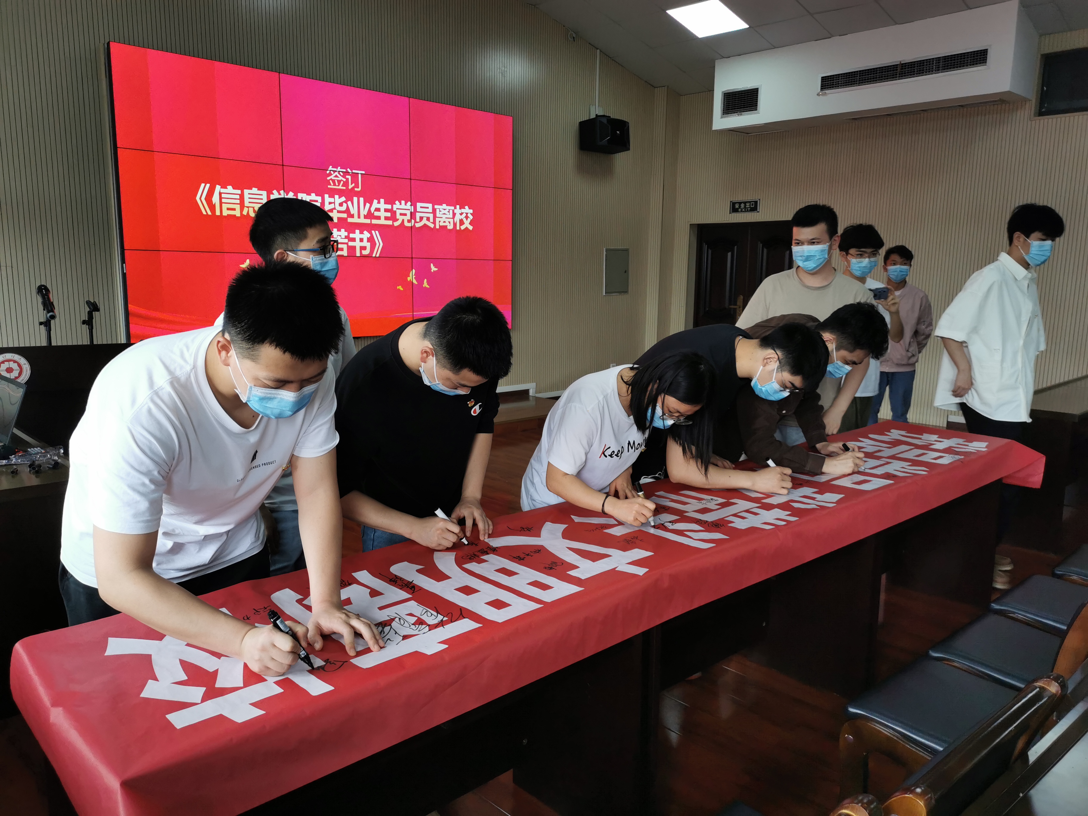 最后,与会党员对毕业生组织关系转接相关要求进行了学习,纷纷表示会按规定转接组织关系,并作出“我是党员,我带头文明离校”的承诺。