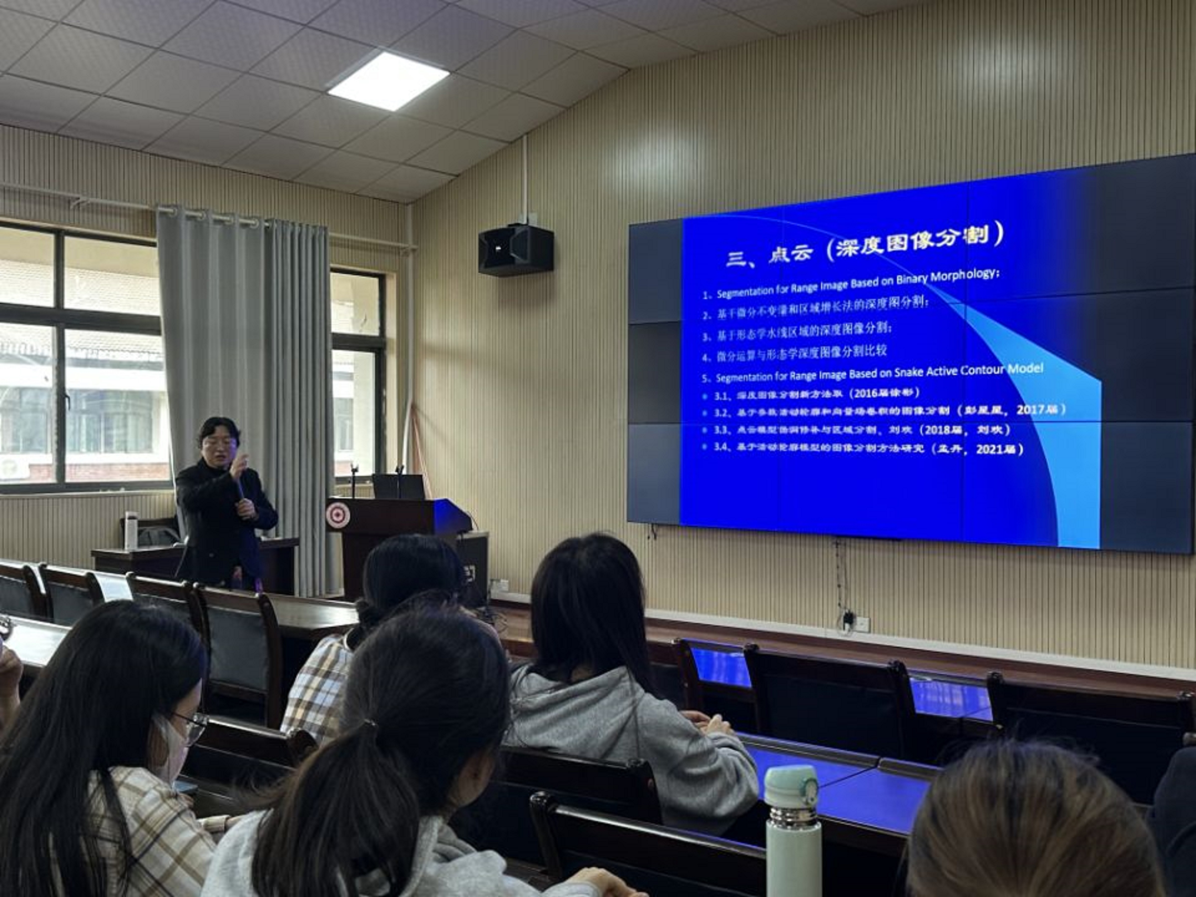 学术会议现场气氛热烈,张梅老师的精彩报告引起了学生们极大的兴趣,就3D建模与深度学习分析开展热烈的讨论,学术交流气氛浓厚,开拓了师生的科研视野。