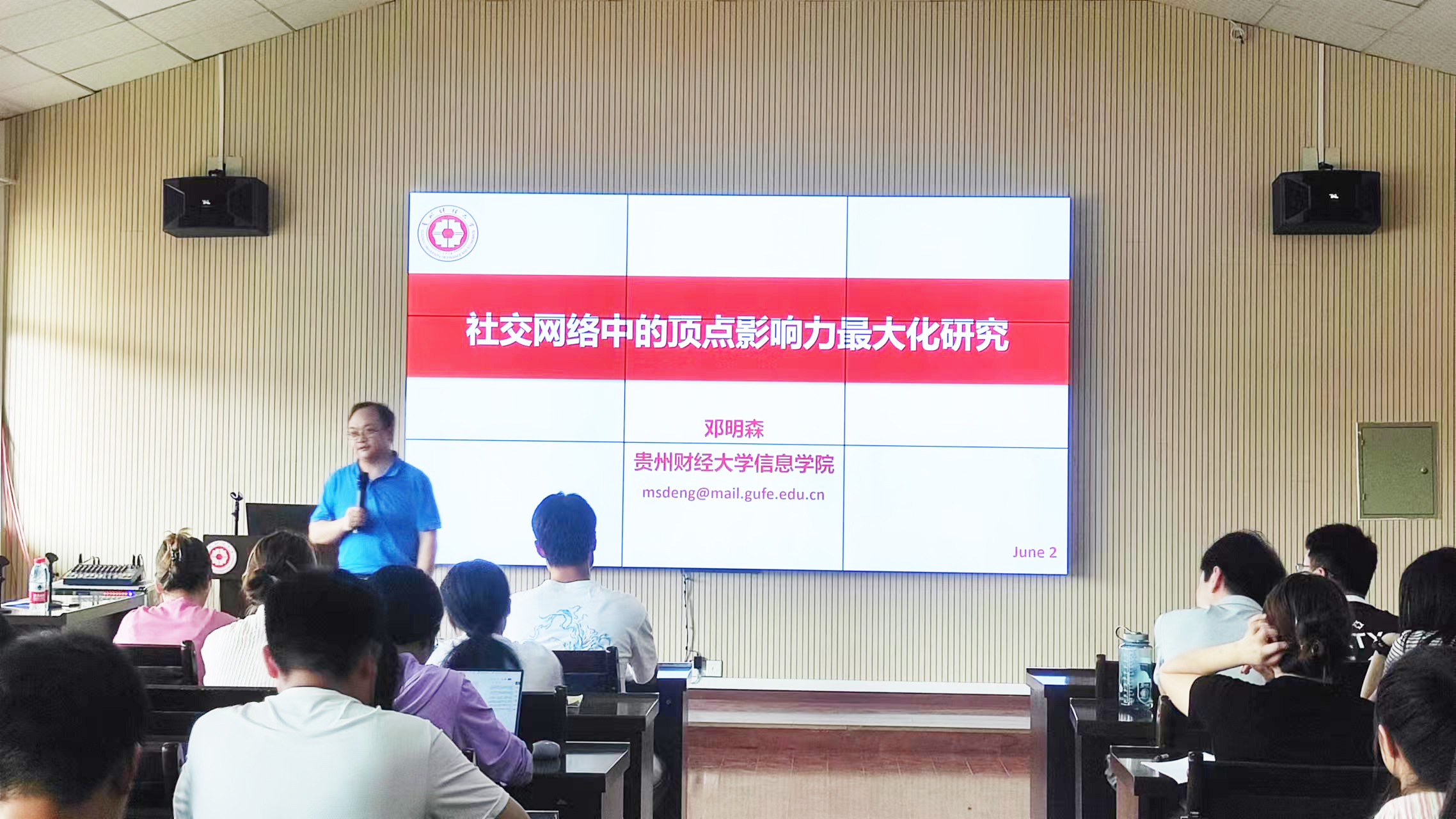 本年度第二场学术报告会在志学楼506顺利进行。本次报告会邀请了邓明森教授和张宁教授为学院师生开展学术讲座。报告会由信息管理系副主任喻曦主持,学院教师、研究生、本科生近100人参加了此次讲座。