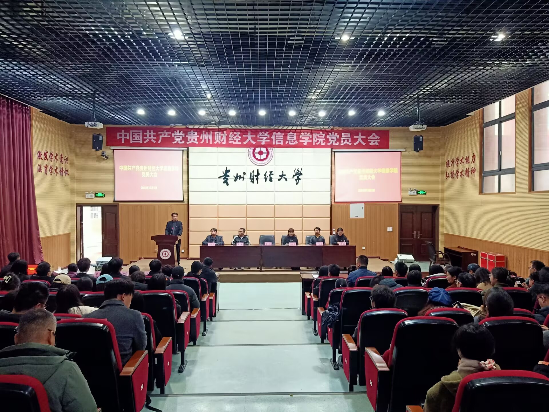 党委班子全体在家领导出席会议,学院全体师生党员参加。校指导组、校党委正处级专职组织员潘丽娜、党外人士代表崔鹏、项欣等应邀列席会议。大会由詹伟主持。